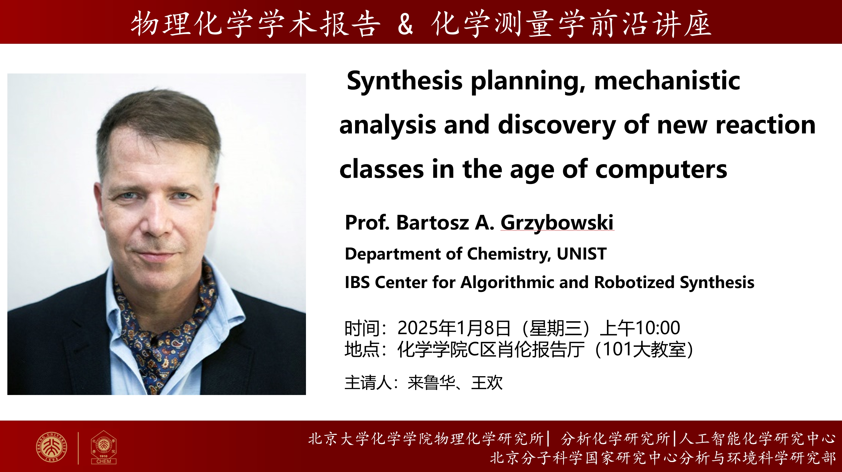 Bartosz A. Grzybowski is a Distinguished Professor of Chemistry at UNIST and a Director of the IBS Center for Algorithmic and Robotized Synthesis (CARS). He is also Professor at the Institute of Organic Chemistry, Polish Academy of Sciences. Although he has spent a large fraction of his research career on esoteric problems of self-assembly and non-equilibrium systems, he considers his most impactful discoveries to be in the area of computer-driven synthesis (e.g., the Chematica/Synthia and Allchemy programs). Grzybowski is an author of ca. 300 articles, and over the years received numerous accolades of which the 2016 Feynman Prize and the 2022 Foundation for Polish Science Prize are closest to his heart. He started several companies – most recently, Allchemy, Inc. – and has advised various industrial and governmental bodies in areas ranging from AI to oil drilling.