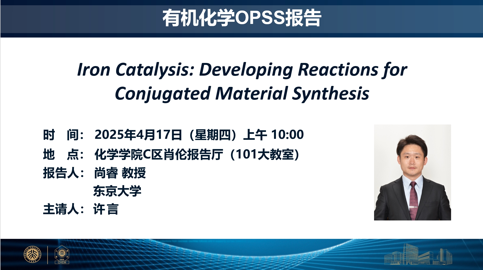 As the most abundant metal on the Earth with negligible biological toxicity, iron is ideal as a sustainable catalytic resource for producing organic functional materials. Through years of research on iron catalysis and conjugated materials, we have come to understand various unique properties of organic iron compounds, especially their low oxidation-reduction potentials in catalyst turnover and the mechanism of C-H bond cleavage. The speaker acknowledges that these characteristics give iron catalysis an advantage in synthesizing highly conjugated molecules, especially those with higher HOMO energy levels than conventional molecules, that are difficult to obtain. We have successfully designed several iron-catalyzed reactions that facilitate the efficient synthesis of various conjugated polymers and small polycyclic conjugated molecules. Some new molecules created through our iron catalysis have exhibited excellent performance in solar cells, photodetectors, and light-emitting, highlighting the potential of this ultra-low-cost metal to revolutionize the organic electronics industry.
