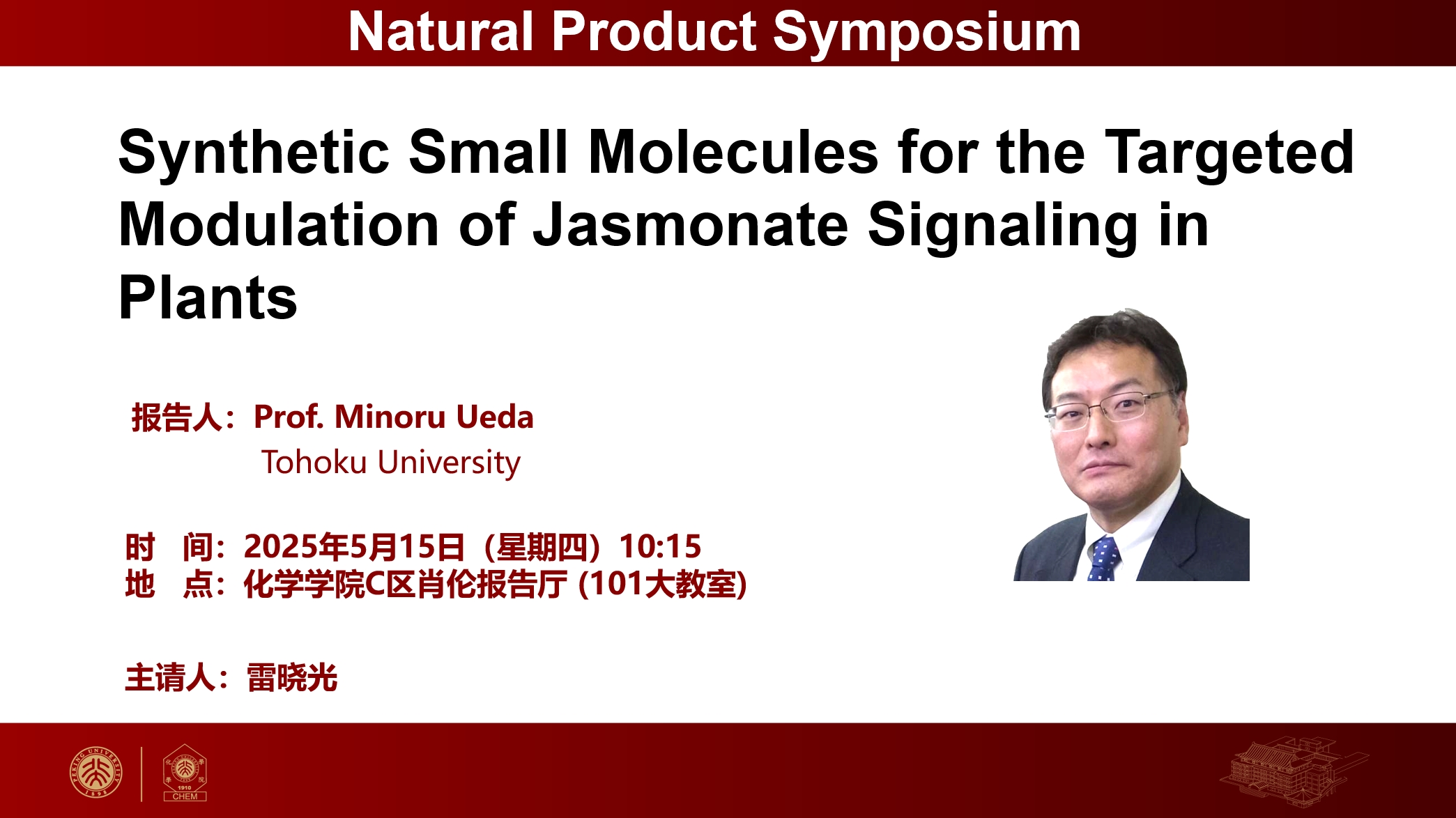 Jasmonates, plant oxylipins, comprise a pivotal class of lipid-derived plant hormone that orchestrate a wide range of biotic interactions, including those with phytopathogens and herbivorous insects, as well as modulate the biosynthetic pathways of specialized metabolites. Despite their critical roles in plant defense, the translational potential of jasmonate-mediated signaling has been limited by the inherent “growth-defense trade-off,” wherein activation of JA signaling concomitantly inhibits plant growth and development. We have demonstrated that this trade-off can be circumvented through the use of rationally designed synthetic ligands with selective affinity for specific subtypes of the COI1–JAZ receptor complex. In this presentation, I will present our latest findings on synthetic small molecules capable of enhancing the biosynthesis of steroidal alkaloids in Solanum lycopersicum without compromising vegetative growth, offering a promising strategy for decoupling growth and defense responses in crop species. References M. Ueda et al., Recent advances in the chemistry and biology of oxylipin plant hormones, Nat. Prod. Rep., in press (2025)