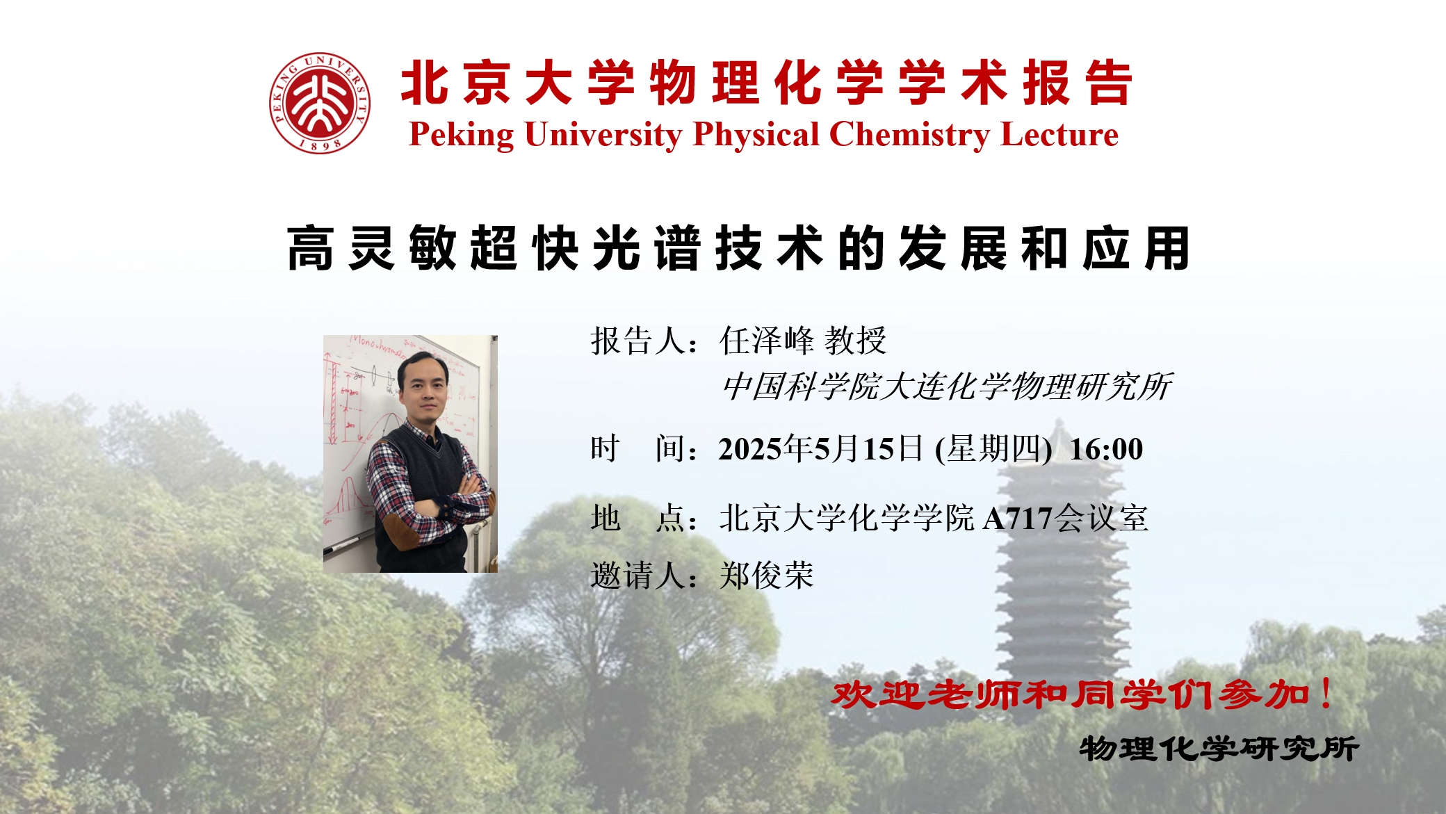 快光谱作为前沿性的研究方法与技术,凭借其卓越的时间分辨率,能够以飞秒乃至阿秒量级的精度捕捉物质的动态演化过程,在探索自然界微观奥秘、揭示深层物理化学机制等方面发挥着不可替代且意义深远的作用。在本次报告中,我将介绍近年来我们在提升超快光谱灵敏度技术领域所取得的进展及其相关应用。1.利用光发射电子显微镜(PEEM)与飞秒激光技术相结合,开展了对半导体材料载流子时空分辨动力学的研究。以MoS₂薄膜为例探讨半导体材料中能带弯曲(band bending)效应对载流子动力学行为的影响;2. 运用平衡探测技术,提升了瞬态吸收(Transient Absorption,TA)光谱的灵敏度(ΔOD~10⁻⁷),使得我们能够测量太阳光照条件下测量钙钛矿半导体材料的本征载流子动力学特性。同时,我也将讨论目前文献中 TA 实验普遍存在的问题;3. 利用石英晶体的体相信号,有效提高了表面和频(Sum Frequency Generation,SFG)光谱的灵敏度,并应用于探究反应条件下催化反应机理的尝试,以及利用我们发展的高灵敏双共振 SFG 技术研究石英表面罗丹明 6G 分子的电子光谱。报告中,我将与大家分享我们在瞬态吸收显微(Transient Absorption Microscopy,TAM)和飞秒时间分辨 SFG研究表面光催化的最新研究进展,并对高灵敏超快光谱技术在物理化学研究中的未来发展趋势和应用前景进行展望。