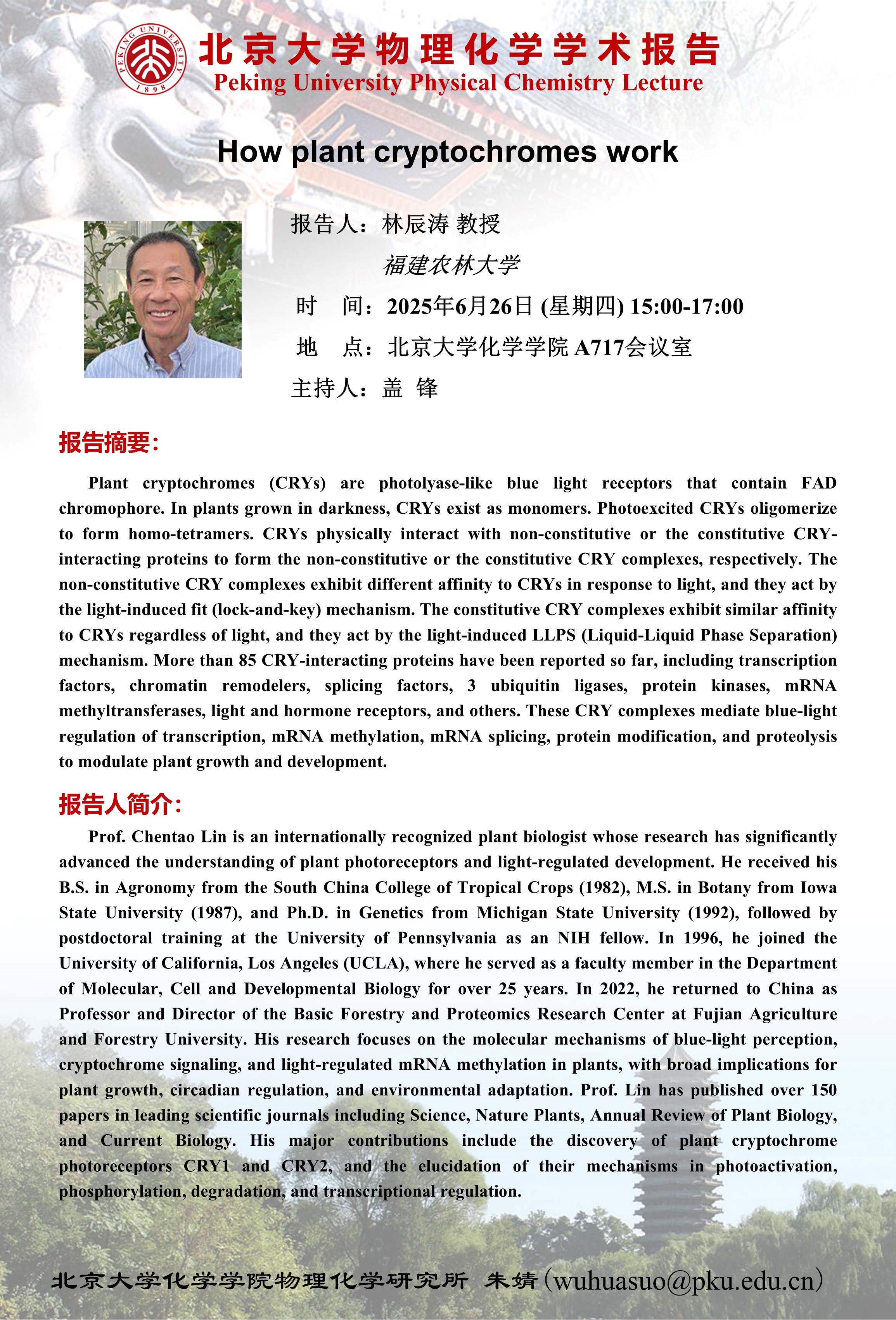 【北京大学物理化学学术报告】How plant cryptochromes work