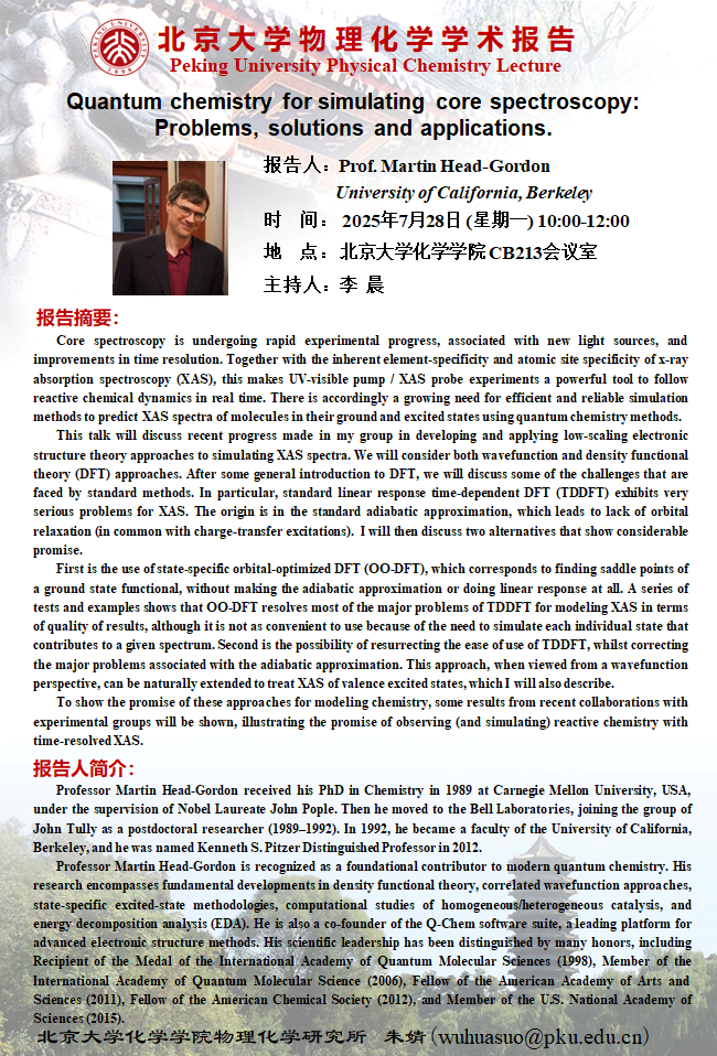 【北京大学物理化学学术报告】Quantum chemistry for simulating core spectroscopy: Problems, solutions and applications