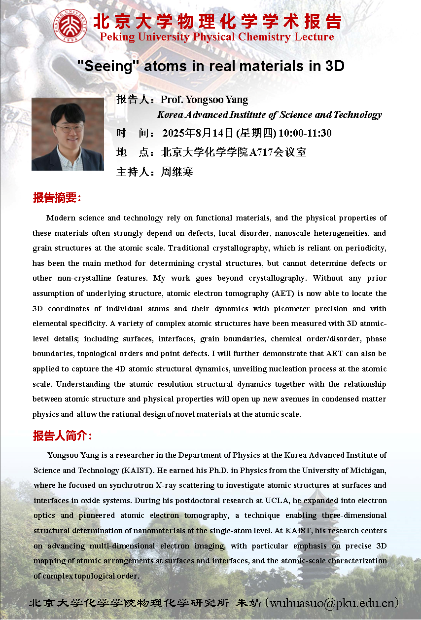 【北京大学物理化学学术报告】"Seeing" atoms in real materials in 3D