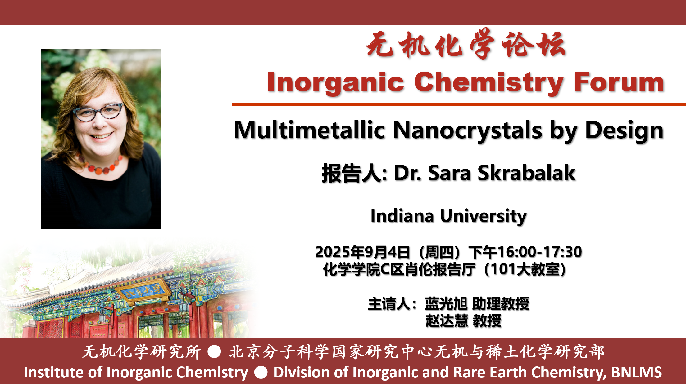 Dr. Sara Skrabalak received her B.A. degree in chemistry from Washington University in St. Louis in 2002 where she conducted research with Professor William E. Buhro. She was the recipient of the Sowden Award in undergraduate research from the Department of Chemistry. She then moved to the University of Illinois at Urbana-Champaign where she completed her Ph.D. degree in chemistry in fall of 2006 with the tutelage of Professor Kenneth S. Suslick. There, she was the recipient of the T.S. Piper Thesis Award for her work on porous materials. She then conducted postdoctoral research at the University of Washington – Seattle with Professors Younan Xia and Xingde Li, designing nanomaterials for biomedical applications. She began her independent career in the Chemistry Department at Indiana University – Bloomington in 2008, where she was named the James H. Rudy Professor in 2015 and Robert & Marjorie Mann Chair in 2024. She is a recipient of both NSF CAREER and DOE Early Career Awards. She is a 2012 Research Corporation Cottrell Scholar, a 2013 Sloan Research Fellow, a 2014 Camille Dreyfus Teacher-Scholar, and recipient of the 2014 ACS Award in Pure Chemistry and 2015 Baekeland Award. In 2017, she was named both a Fulbright Fellow and Guggenheim Fellow as well as the recipient of Research Corporation’s Frontiers in Research Excellence & Discovery Award. In 2020 Professor Skrabalak was named a fellow of the American Association for the Advancement of Science and assumed the roles of Editor in Chief for both Chemistry of Materials and ACS Materials Letters. Her research group focuses on nanomaterial design and synthesis for applications in catalysis, solar energy use, secured electronics, chemical sensing, and more (http://www.indiana.edu/~skrablab/).