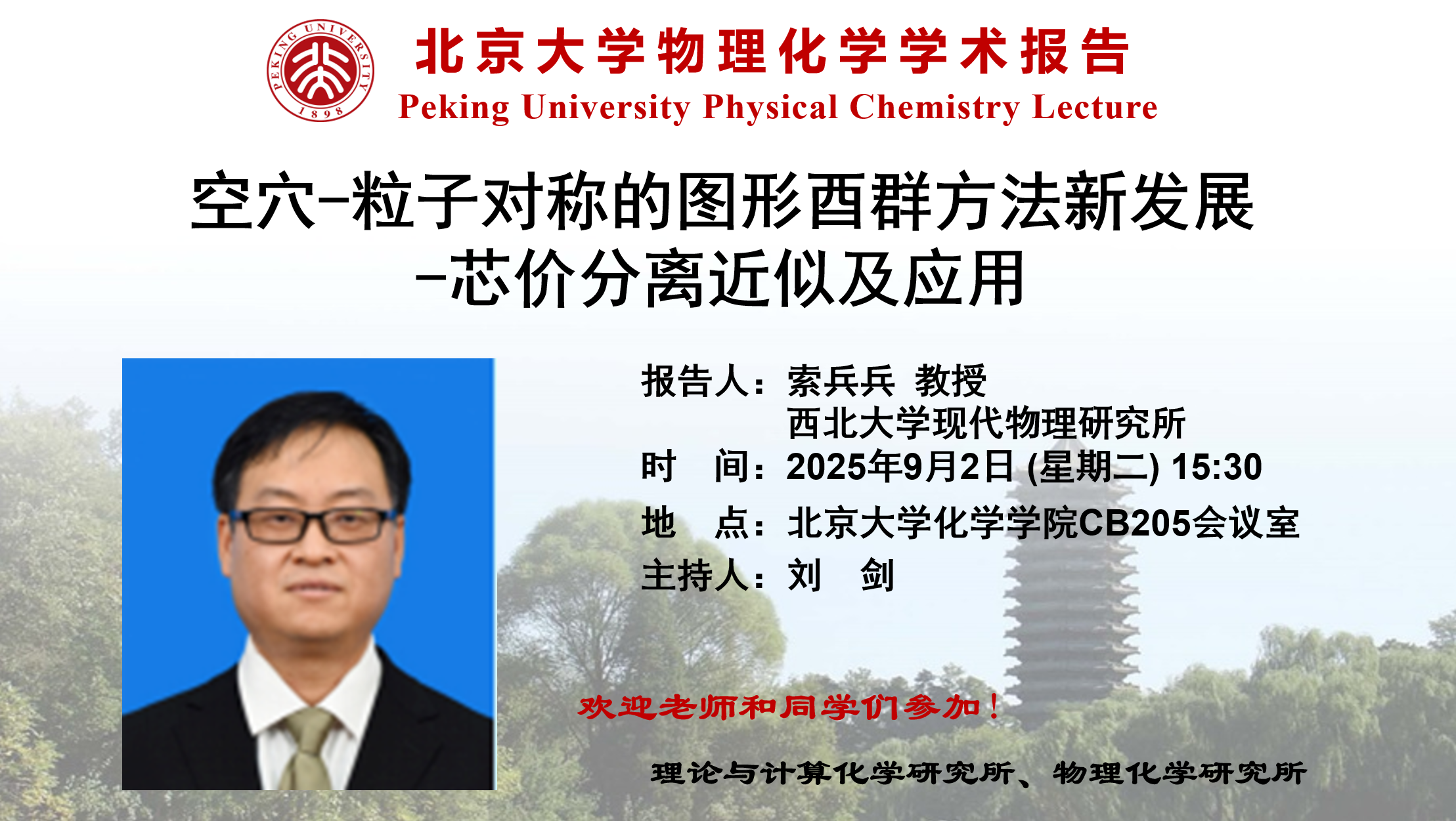 【北京大学物理化学学术报告】空穴-粒子对称的图形酉群方法新发展-芯价分离近似及应用
