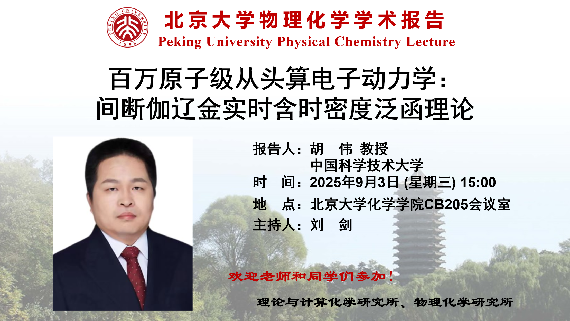 【北京大学物理化学学术报告】百万原子级从头算电子动力学: 间断伽辽金实时含时密度泛函理论
