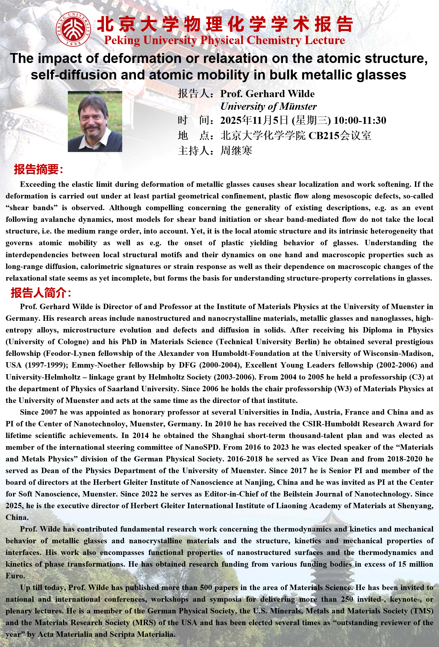 【北京大学物理化学学术报告】The impact of deformation or relaxation on the atomic structure, self-diffusion and atomic mobility in bulk metallic glasses