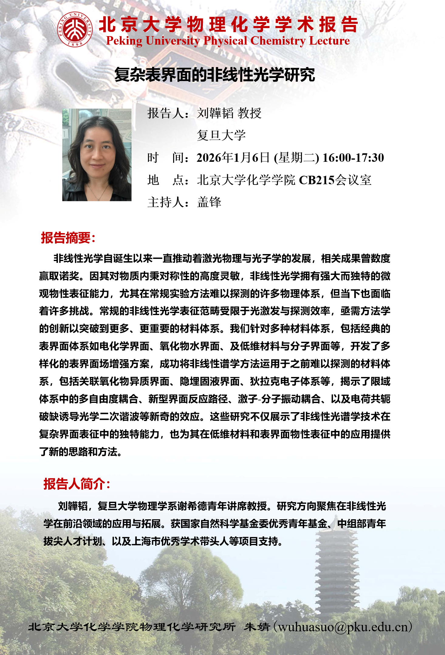 【北京大学物理化学学术报告】复杂表界面的非线性光学研究