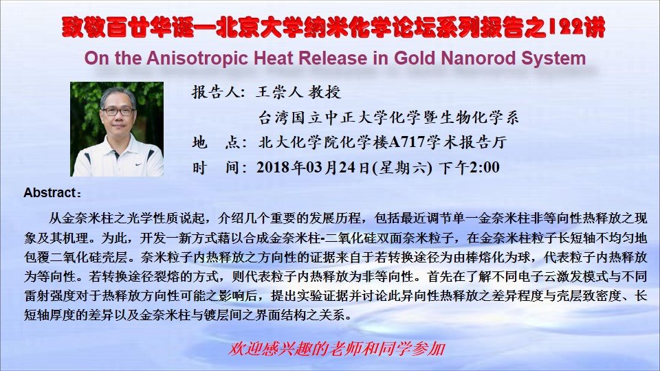 [致敬百廿华诞—北京大学纳米化学论坛系列报告之122讲]On the Anisotropic Heat Release in Gold Nanorod System