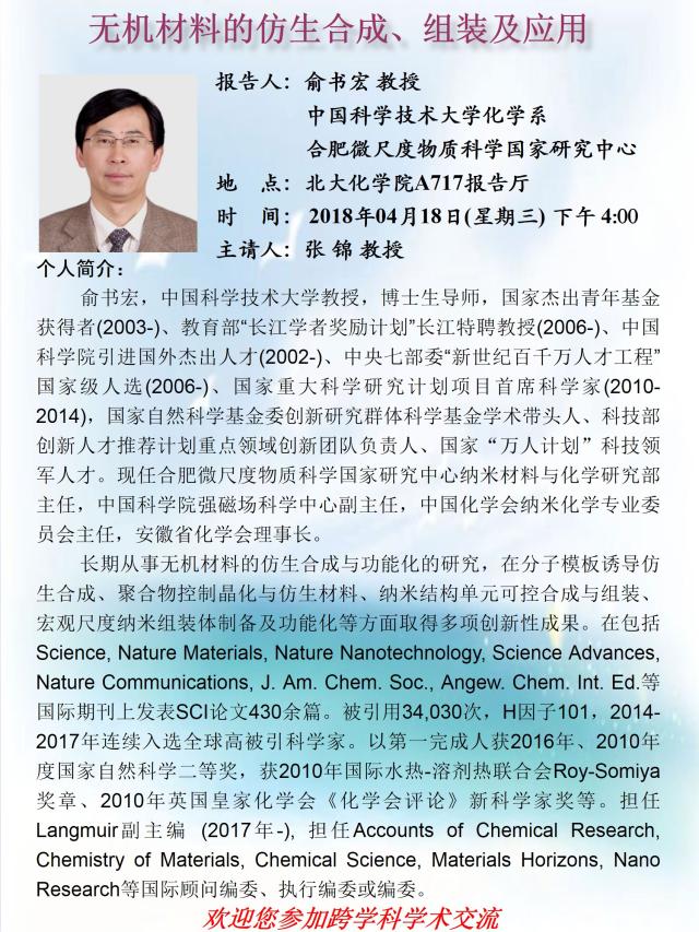 【致敬百廿华诞—北京大学纳米科技论坛系列报告之111讲】无机材料的仿生合成、组装及应用