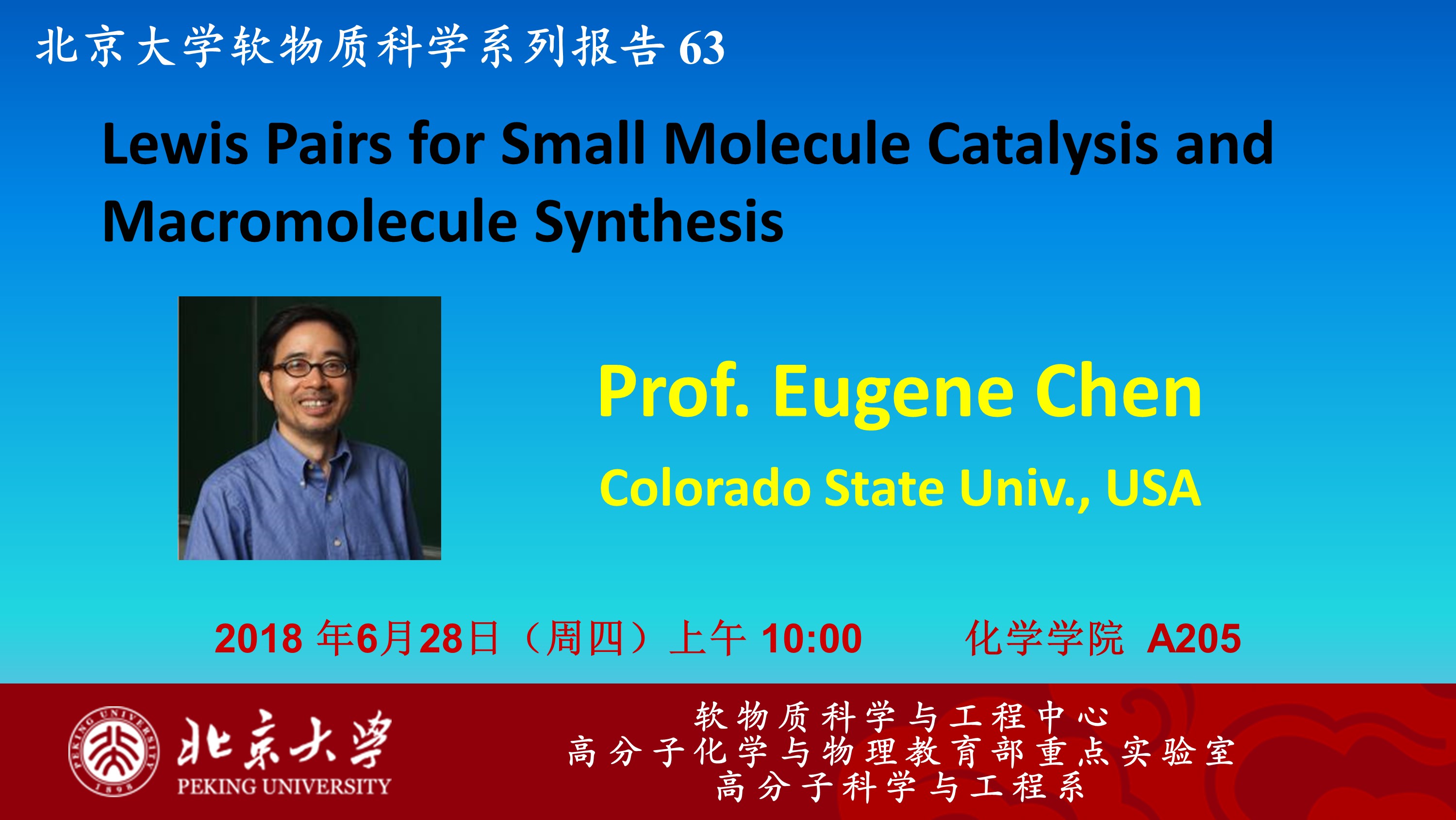 【软物质科学系列报告63】Lewis Pairs for Small Molecule Catalysis and Macromolecule Synthesis