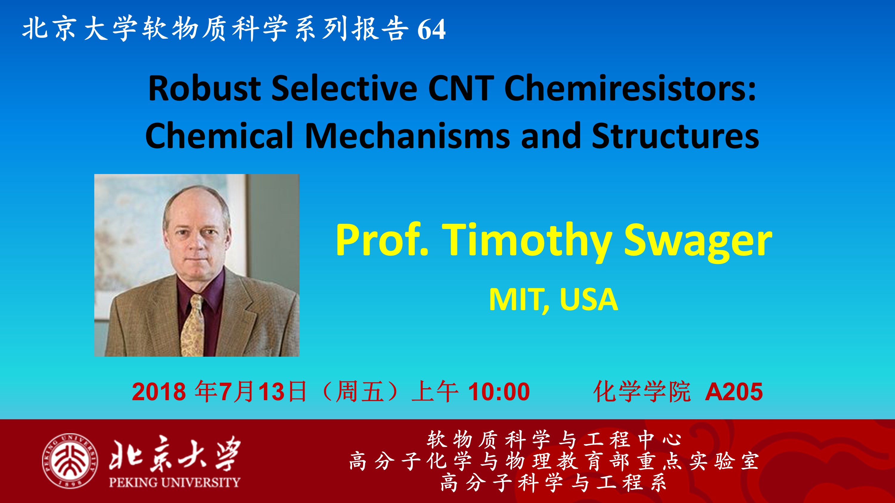 【北京大学软物质科学系列报告 64】Robust Selective CNT Chemiresistors: Chemical Mechanisms and Structures