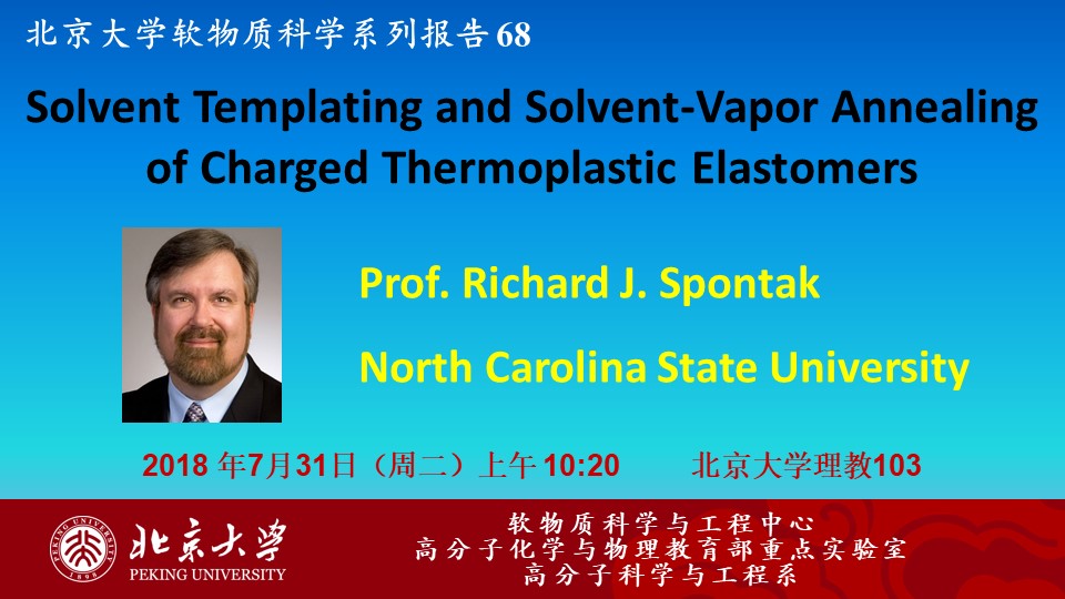 【北京大学软物质科学系列报告 68】Solvent Templating and Solvent-Vapor Annealing of Charged Thermoplastic Elastomers