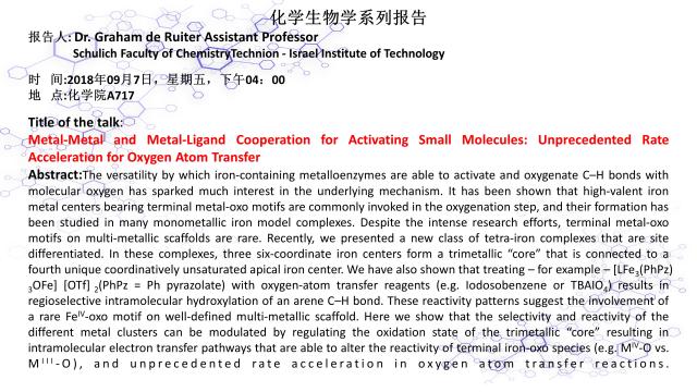 【化学生物学系列报告】Metal-Metal and Metal-Ligand Cooperation for Activating Small Molecules: Unprecedented Rate Acceleration for Oxygen Atom Transfer
