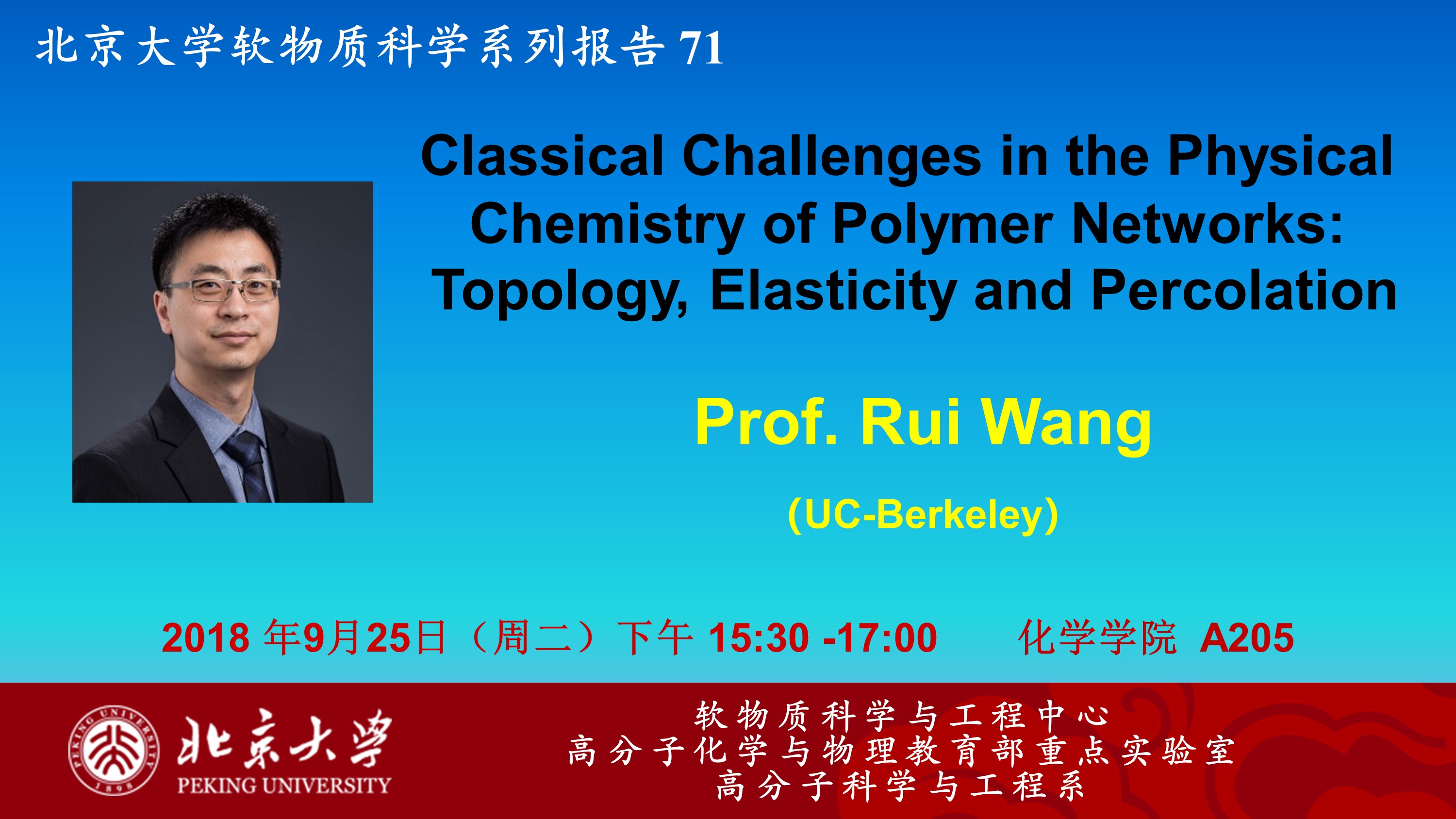 【北京大学软物质科学系列报告 71】Classical Challenges in the Physical Chemistry of Polymer Networks: Topology, Elasticity and Percolation
