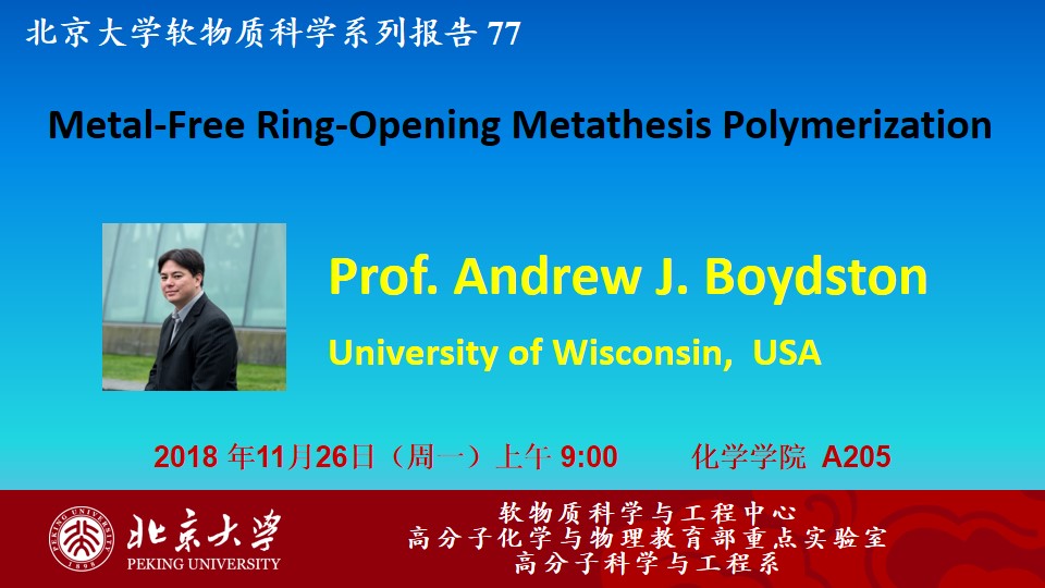 【北京大学软物质科学系列报告 77】Metal-Free Ring-Opening Metathesis Polymerization