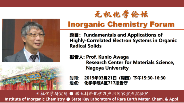【无机化学论坛】Fundamentals and Applications of Highly-Correlated Electron Systems in Organic Radical Solids