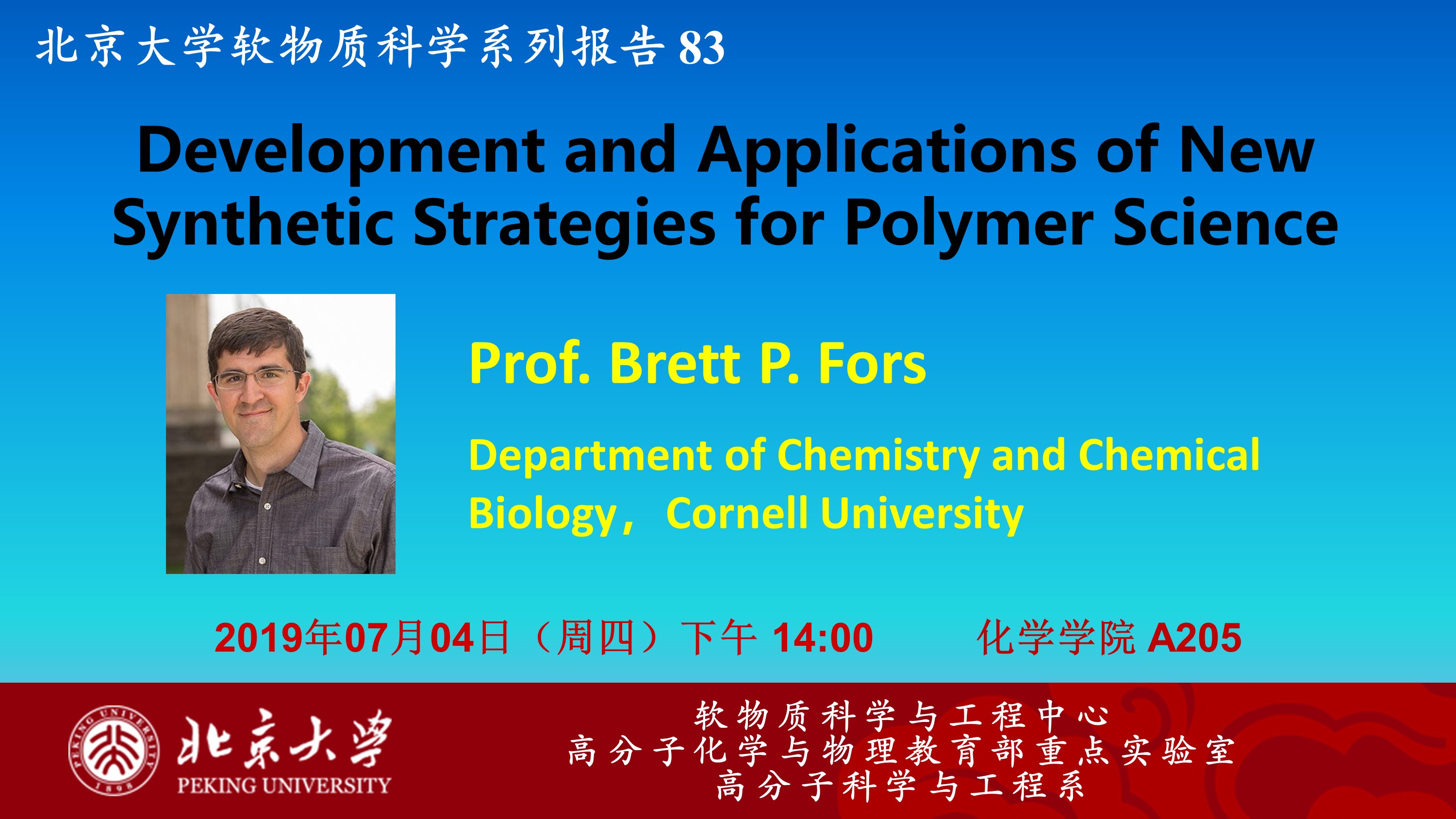 【北京大学软物质科学系列报告 83】Development and Applications of New Synthetic Strategies for Polymer Science