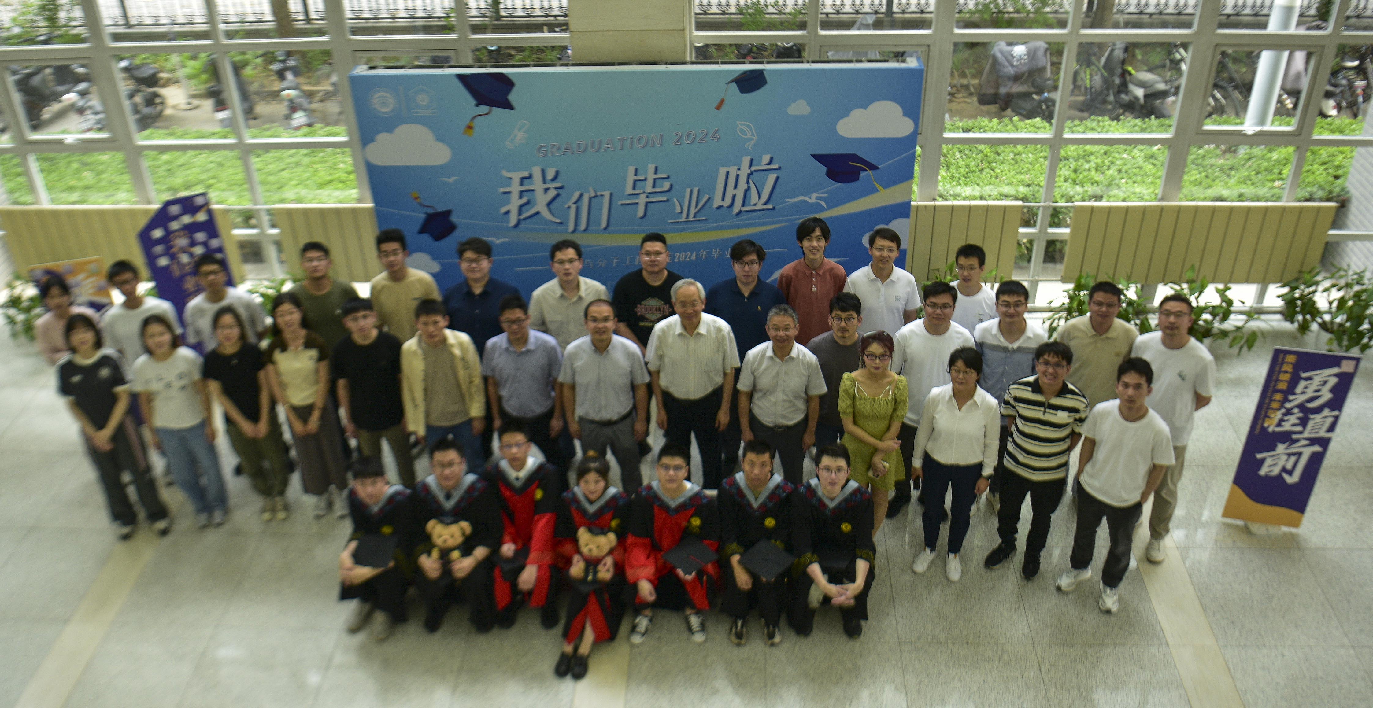 6月29日,两个研究室全体成员在A区大楼一起和毕业生拍照留念。当晚大家举行毕业生欢送会,席老师、张老师分别致辞,感谢全体毕业生为两个研究室所做出的贡献,期待他们在未来的研究与工作中取得新的突破。所有毕业生,以及准备离站的博士后师兄们先后回顾了在组期间的科研与生活,感谢三位老师对他们的培养以及实验室所有同学的帮助,祝愿研究室取得更多更出色的研究成果,并祝愿师弟师妹们科研顺利。