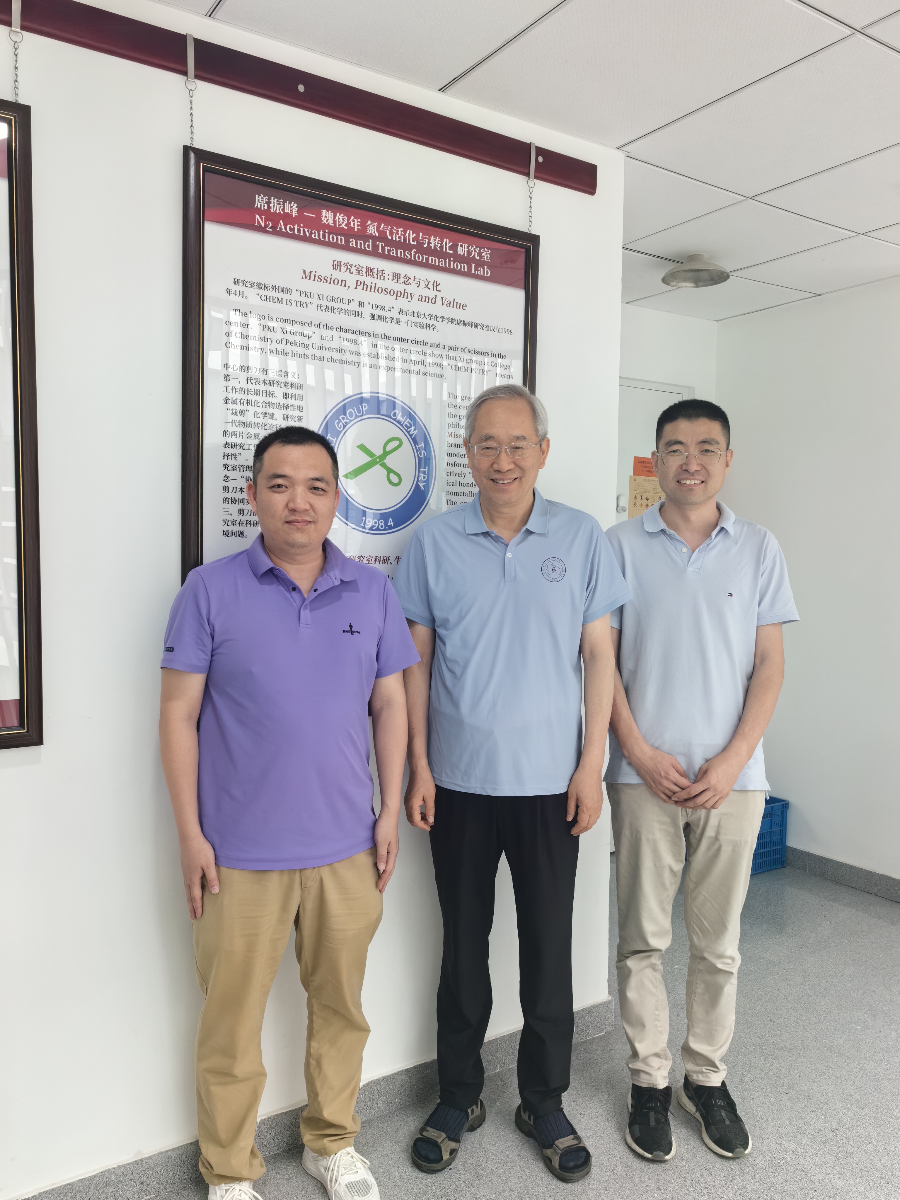 热烈欢迎耿巍芝博士和李恒博士回组访问! 时间:2024-07-05 来源:作者: 字体: 【小】 【中】 【大】 7月5日,耿巍芝和李恒在博士毕业十周年之际回到北大化学学院,来到研究室访问,在席老师带领下参观了实验室,并合影留念。