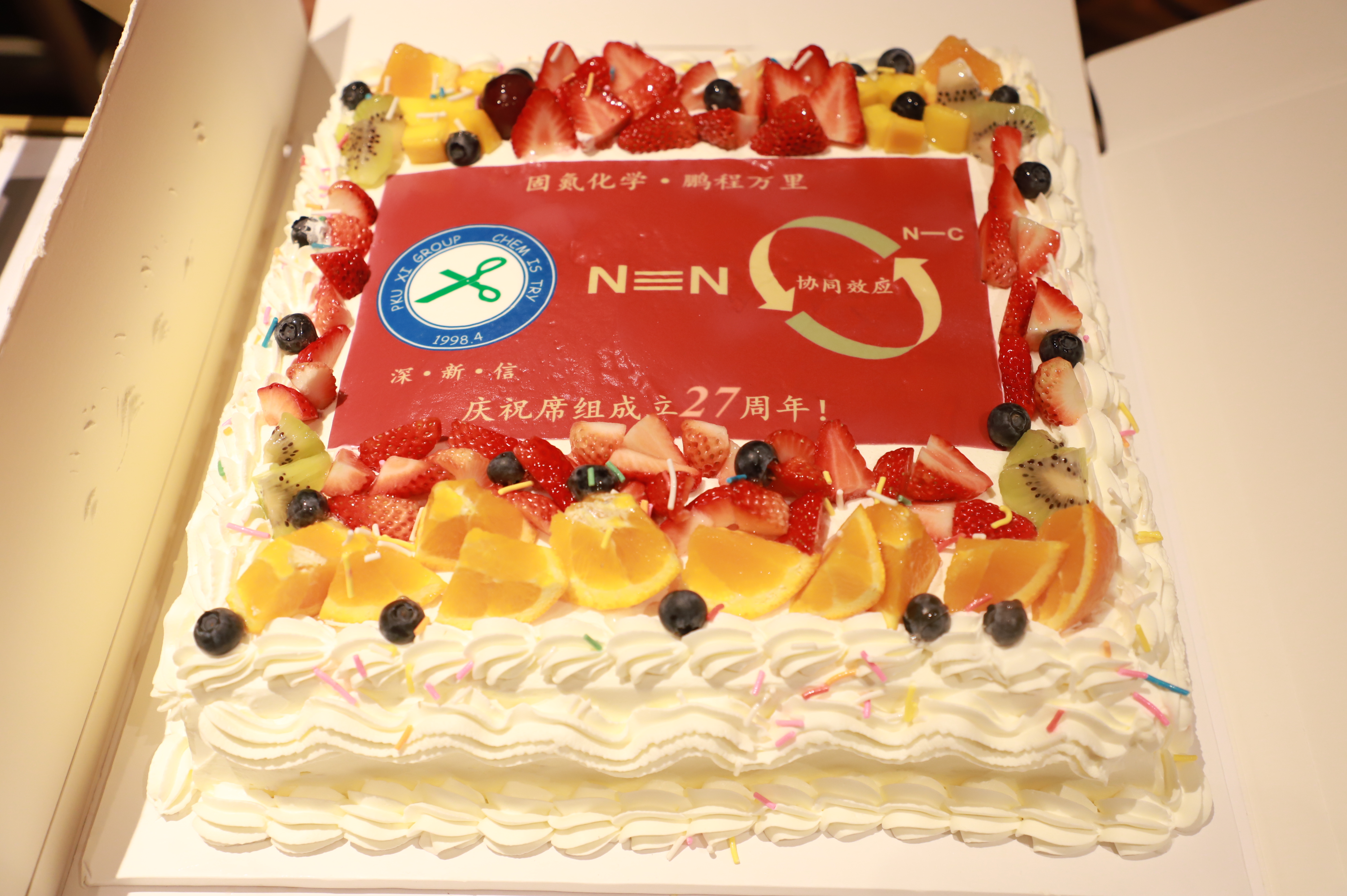 2025年3月28日,研究室在组师生和几位已离组人员欢聚一堂,在醉爱饭店庆祝席组成立27周年。首先,席老师在为组庆定制的蛋糕上切下了第一刀,从正中间切断了氮气的叁键,组庆聚会在热烈的氛围下开始了。接下来,已离组的王从洋、郝伟、丰睿、李石、张韶光师兄分别回忆了在组内学习的感受,分享了在不同岗位上的工作经历,表达了对席组未来的期待!郁磊代表在组同学讲述了在组内学习生活的感受,表达了对一代代席组成员接续奋斗的感谢。最后,在组同学纷纷向已离组的师兄们请教人生发展的困惑,讨论课题上正在经历的困难。