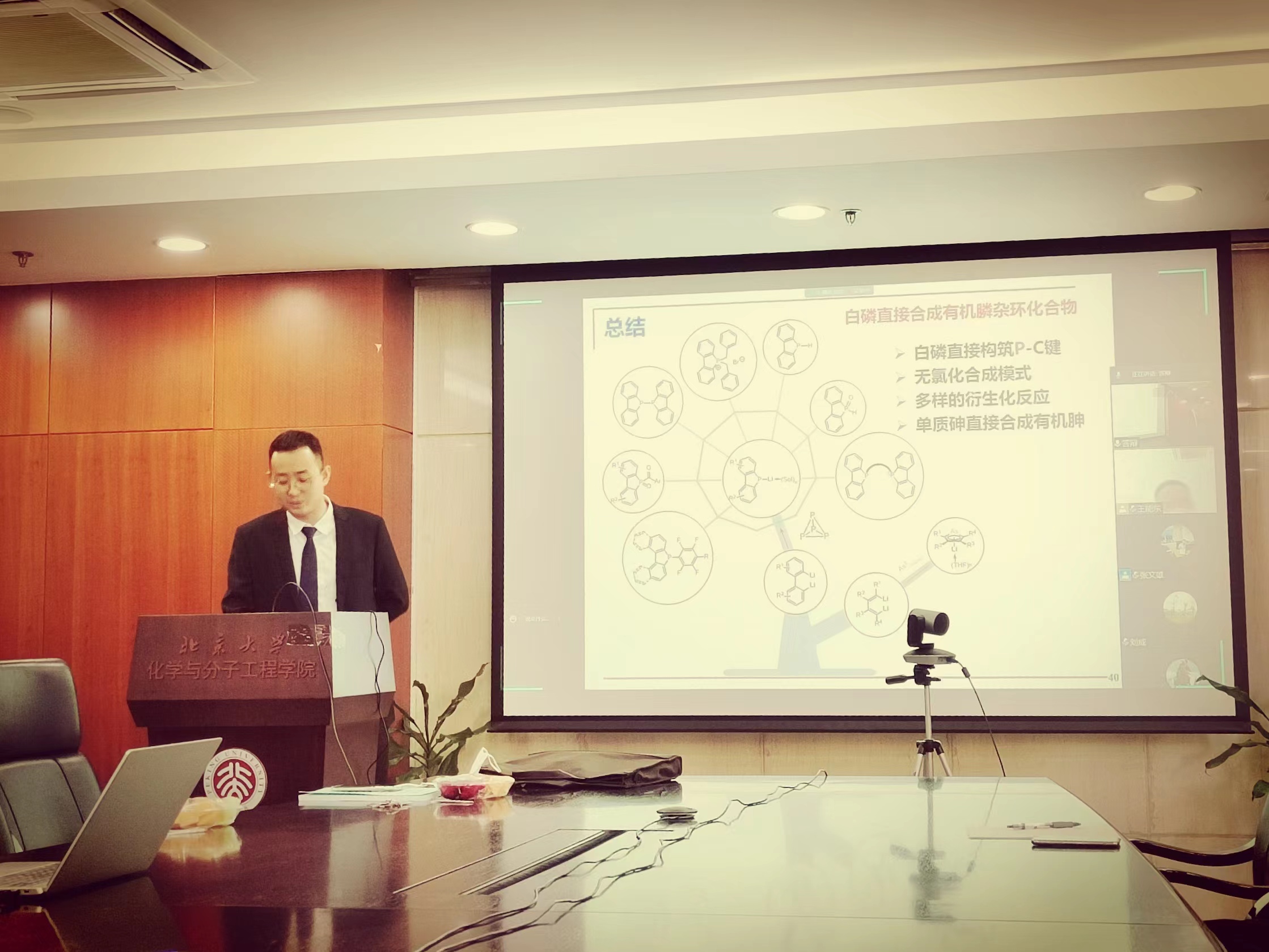 研究室举行博士论文答辩 时间:2022-05-27 来源:作者: 字体: 【小】 【中】 【大】 2022年5月25日,研究室举行博士论文答辩。由于疫情影响,本次答辩通过腾讯会议以线上视频方式进行,席振峰教授和张文雄教授共同指导的17级研究生胡静远在化学学院A205教室现场参加。胡静远同学准备细致充分,科研努力,工作充实。经答辩委员会专家评审一致通过,建议授予博士学位。 感谢胡静远同学多年来为课题组做出的杰出贡献,以及留下的精彩瞬间。离开了熟悉的实验室,走上了新的工作、科研、生活道路,研究室祝福他前程似锦,在新的岗位上工作顺利!