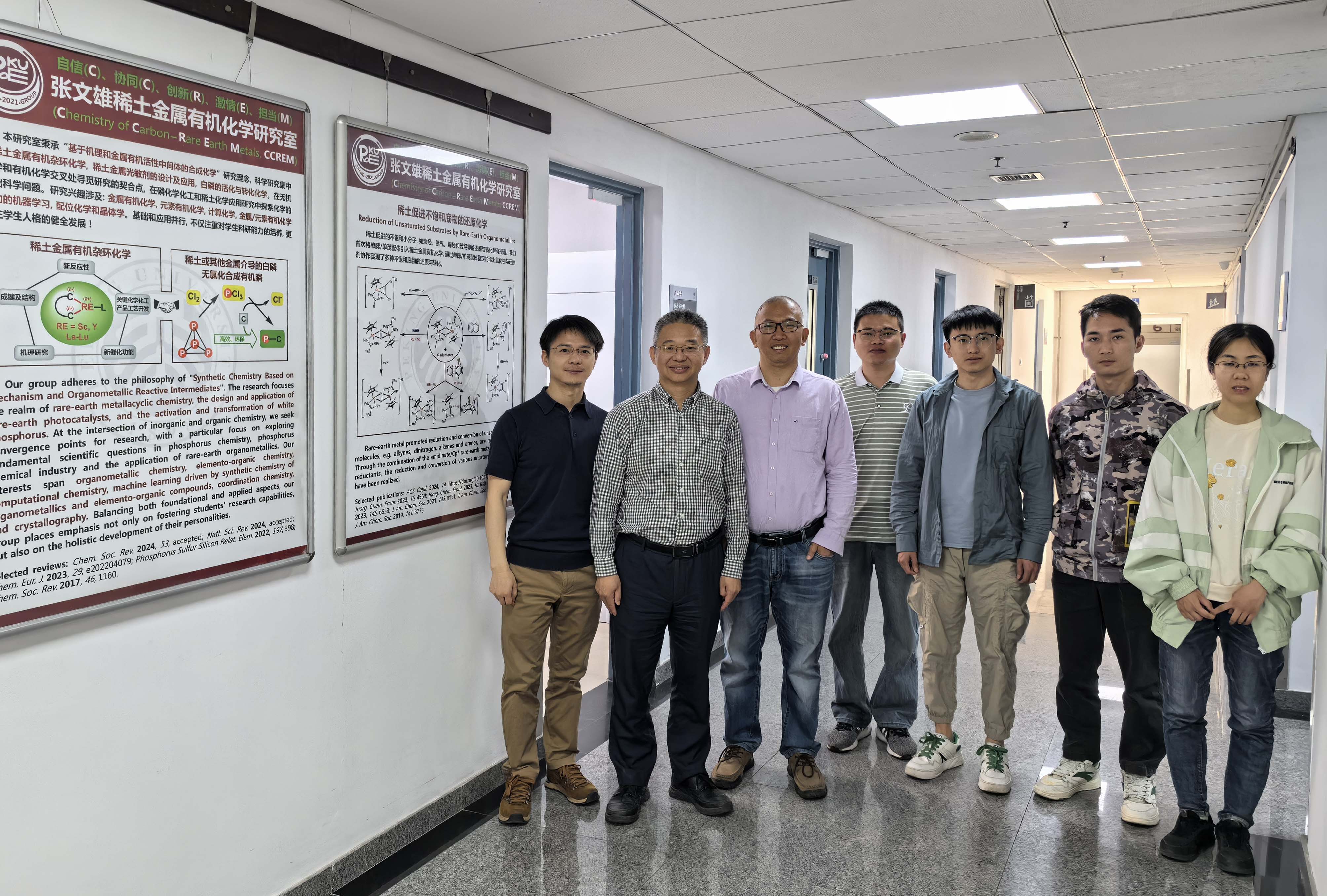 热烈欢迎陈谦教授和胡少伟教授来组访问! 时间:2024-05-14 来源:作者: 字体: 【小】 【中】 【大】 5 月 12 号,西南林业大学陈谦教授和北京师范大学胡少伟教授在张老师带领下访问了我们研究室,他们参观了实验室里的各种仪器设备以及研究室的展板,在张老师热情邀请下大家一起合影留念。陈谦教授目前任职于西南林业大学化学工程学院,他长期从事催化与有机合成、生物质化学与能源、生物质材料与环境等相关领域的研究工作。胡少伟教授目前任职于北师大化学学院,他的研究方向主要为金属有机化学。感谢陈谦教授和胡少伟教授的来访!