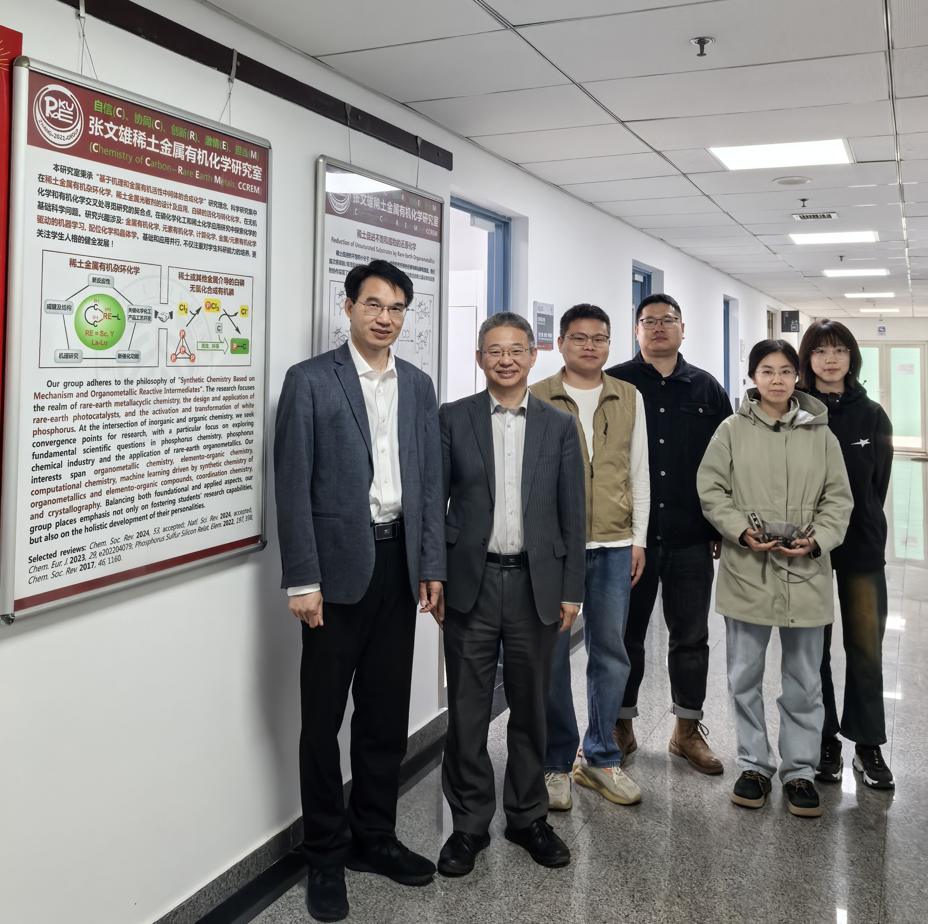 热烈欢迎赵宝国教授来组访问! 时间:2025-04-25 来源:作者: 字体: 【小】 【中】 【大】 4月25日,上海师范大学赵宝国教授受邀至北大进行学术报告,期间他在张老师的带领下参观了实验室,并与同学们合影留念。赵宝国教授目前任职于上海师范大学化学与材料科学学院,长期致力于仿生不对称催化和功能分子仿生合成的研究,感谢赵宝国教授的来访!