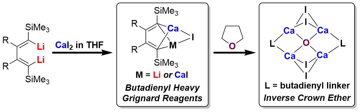 138. Baosheng Wei, Liang Liu, Wen-Xiong Zhang*, and Zhenfeng Xi, Synthesis and Structural Characterization of Butadienyl Calcium-based Heavy Grignard Reagents and Ca4[O] Inverse Crown Ether Complex,