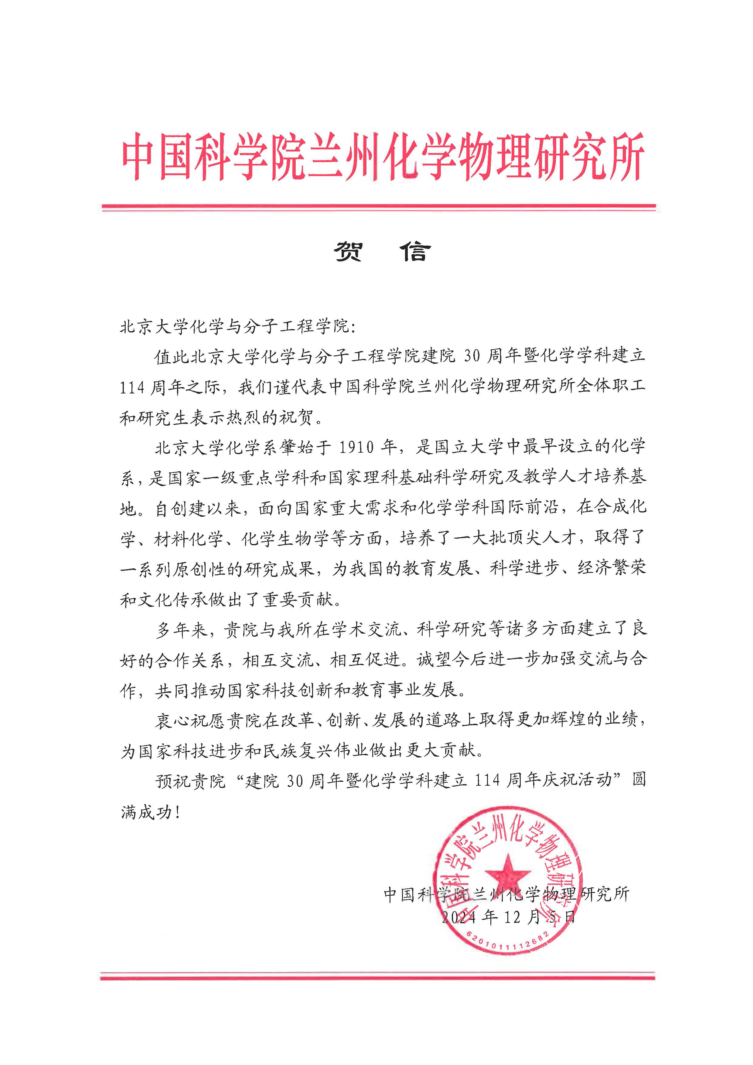 【贺信】-中国科学院兰州化学物理研究所