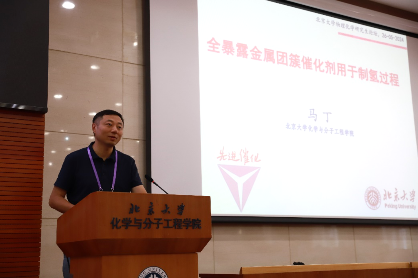论坛邀请北京大学马丁教授作了精彩报告。马老师介绍了全暴露金属团簇催化剂用于制氢过程方面的工作,展开介绍了在N-乙基咔唑脱氢,环己烷脱氢、Pd-Cu双原子催化剂用于乙炔选择加氢等方面的研究成果。报告深入浅出,引人入胜。