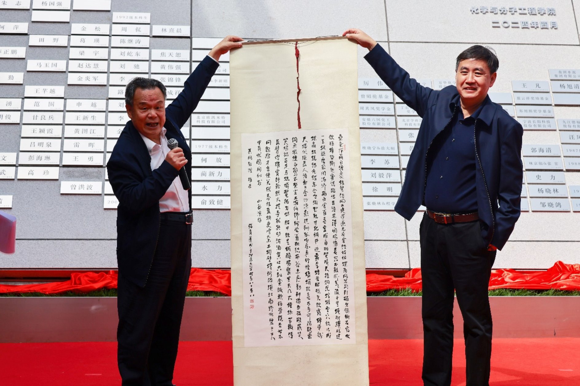 随后,周其凤、耿姝、姚万里、裴坚共同为化学学院捐赠纪念墙揭幕。