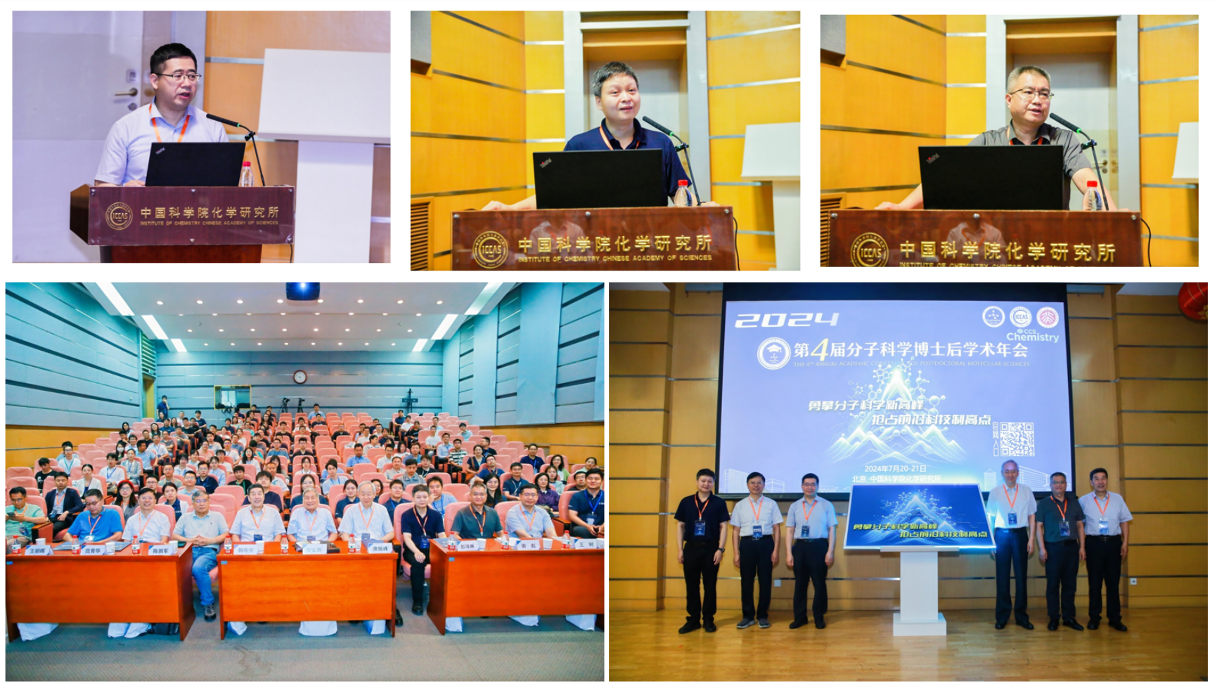2024年7月20-21日,第4届分子科学博士后学术年会在中国科学院化学研究所(以下简称化学所)召开。本届会议由北京分子科学国家研究中心(以下简称中心)主办,化学所和北京大学化学与分子工程学院(以下简称北大化学学院)的在站博士后组织举办。中心主任、化学所所长王树研究员、北大化学学院副院长彭海琳教授、中国科学院人事局机构与岗位管理处处长谢彪出席论坛并致开幕词,化学所刘云圻院士、陈拥军研究员分别做大会报告。中心主任、北大化学学院席振峰院士、化学所韩布兴院士、化学所党委书记范青华研究员、副所长郑企雨研究员、清华大学化学系王朝晖教授等出席了此次会议。中心在站博士后宋子健博士、陈炜健博士、杨一鸣博士、吴梦鸽博士主持了开幕式、大会报告、博士后发展与产学研论坛、四方交流论坛等会议日程。来自全国各地的学者、博士后、博士生共400余人参加了本次学术年会,会议线上视频直播、图片直播等形式参与规模超过6万人次。