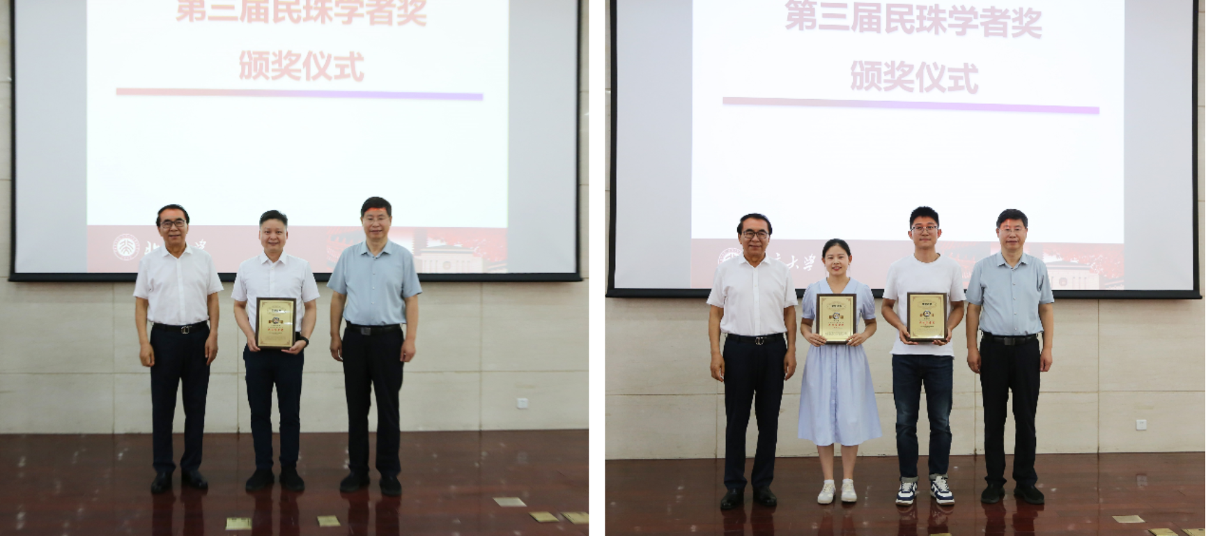 北京大学化学学院阎云老师主持了“民珠学者奖”颁奖仪式。仪式开始,刘忠范院士致辞,回顾了“民珠学者奖”的设立背景。“民珠学者奖”由刘忠范院士和谢晓亮院士倡议,以蔡生民先生及其夫人沈莲珠女士的名字联名,在蔡先生亲属、弟子、北京大学物理化学后学、以及感沐蔡先生铺路之恩的北京大学纳米化学人、北京石墨烯研究院人的大力支持下设立,旨在致敬蔡生民先生为中国和北京大学物理化学学科发展做出的卓越贡献,激励年轻一代肩负起历史使命,创造北京大学物理化学新的辉煌。继2022年7月26日首届民珠学者奖颁奖典礼成功举办以来,民珠学者奖已经走过三个年头。今年,第三届民珠学者奖评选出优秀教师奖获得者彭海琳教授、优秀研究生奖获得者赵凯悦、赵一萱两位同学。