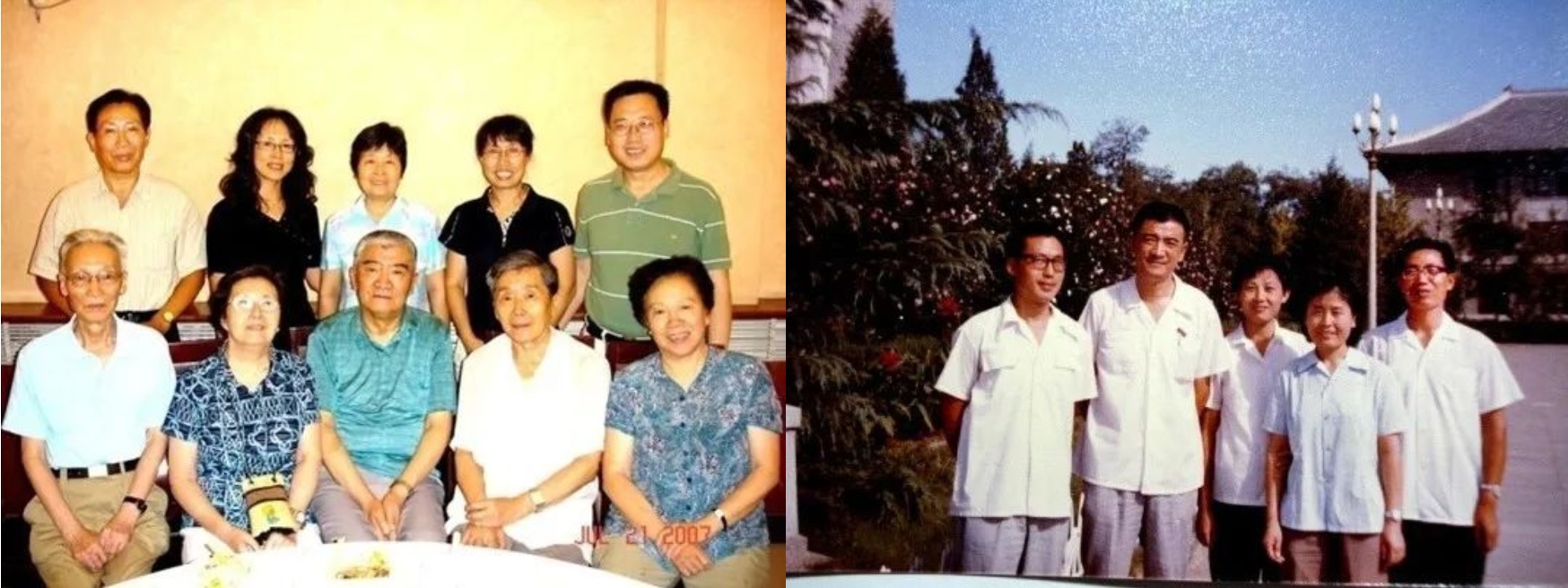 当时分析化学教研室的部分老师(左)和童沈阳先生的课题组成员(右)