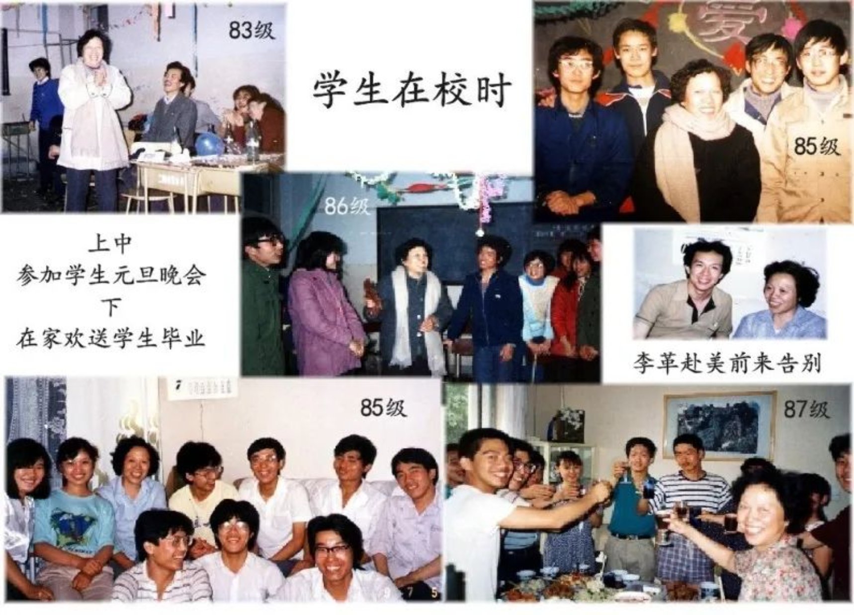 “我参加了十多个学生群,看到有学生有成就、喜事,就用他(她)的照片做出贺卡祝贺。我还保留了同学们的地址,有人还常向我打听化学系其它年级同学的情况或地址。曾有个85级学生在休斯顿去逝了,当地一位83级同学告诉我,请我通知85级同学。2010年化学系在上海召开校友聚会,那一百多同学的名单和地址是我提供的。我也参加了聚会,还分别和各年级同学合影。”