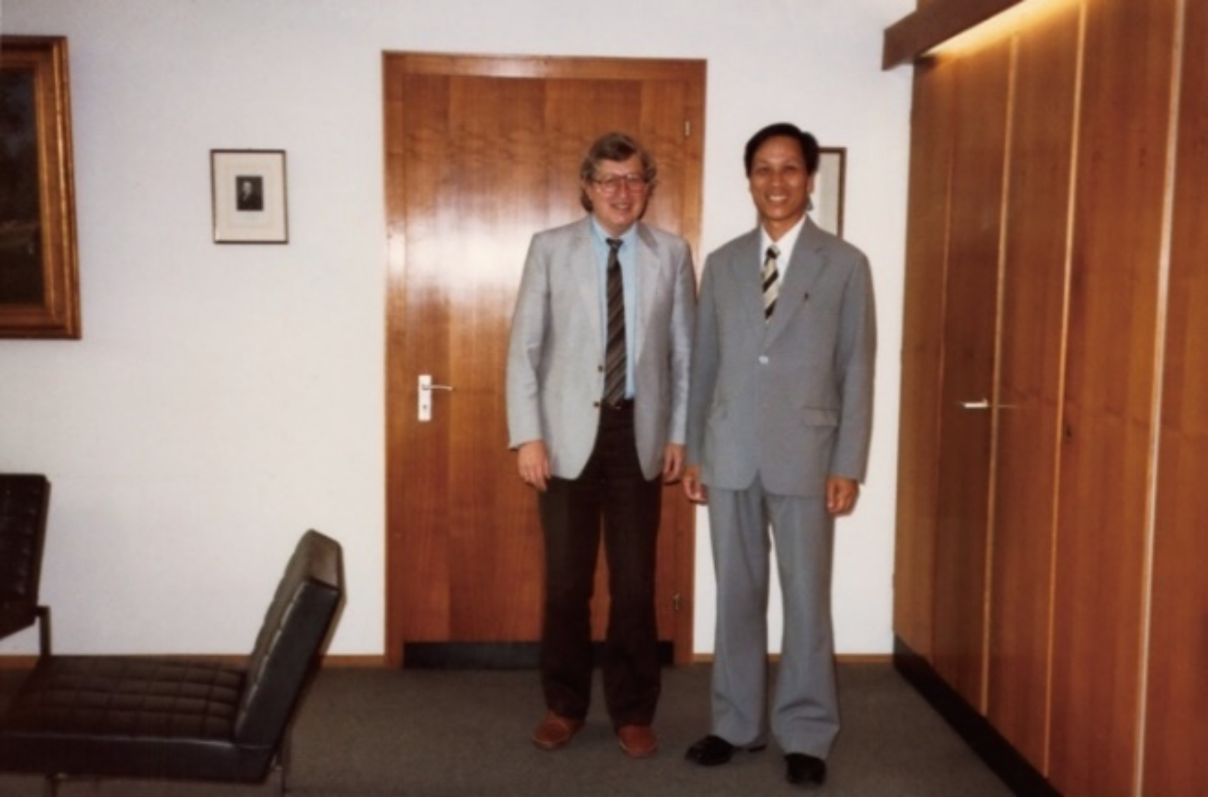 应第八届国际催化大会主席诺贝尔奖得主G. Ertl教授邀请谢有畅先生访问慕尼黑大学,两人的合影;