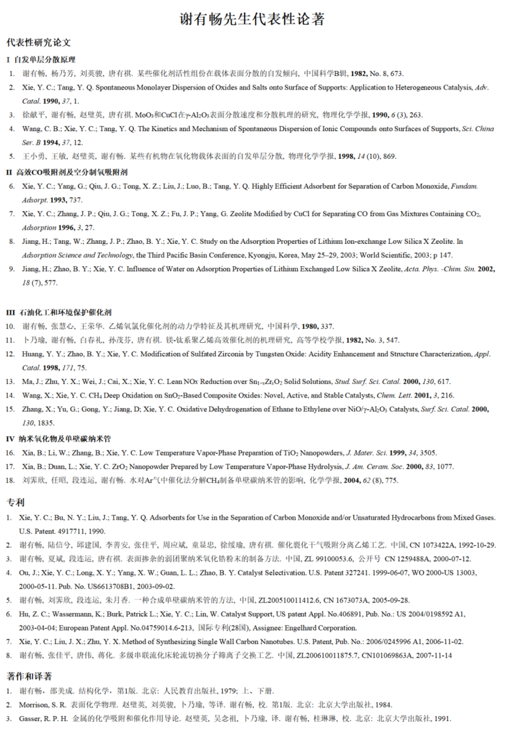 谢先生为人淡泊名利,出淤泥而不染,在追求科学真理上锲而不舍,不轻言放弃,这些品格是众多弟子受益一生的财富。先生独特的科学思维也在潜移默化中影响着周围的人,自发单层分散原理更是深入到每一位学生的科研工作中,累计发表学术论文270多篇,发明专利20项,研究方向更是涉及催化化学、表面科学、材料科学、电化学等多个领域,谢先生团队用这些科研成果对自发单层分散原理给出了完美诠释。