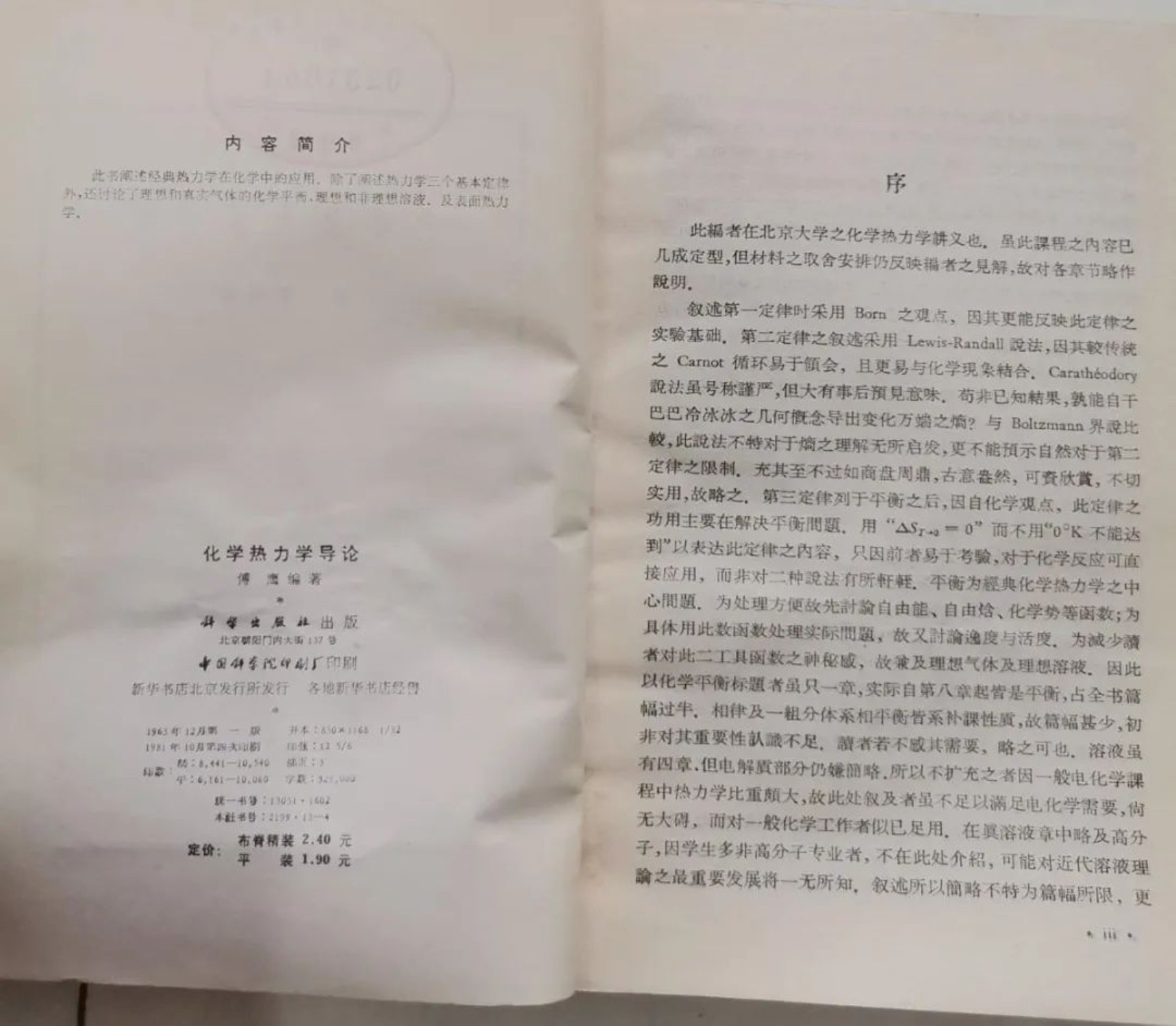 先生常说,“科学的进步是建立在精益求精的基础之上的。”因此,他对自己编写的教材从不轻易出版,总是随着科学的发展不断充实更新和改写,做到精益求精。生前亲睹出版的只有《化学热力学导论》。而他在20世纪30年代就开始倾注心血、40-50年代两次铅印的《大学普通化学》,纵然已经用来培养过数代学生了,还是在他逝世后才正式出版的;1987年,该书被公推授予国家级优秀教材奖。如今看来,傅鹰先生那些没有出版的讲义和手稿对于学界无疑是个巨大的损失。