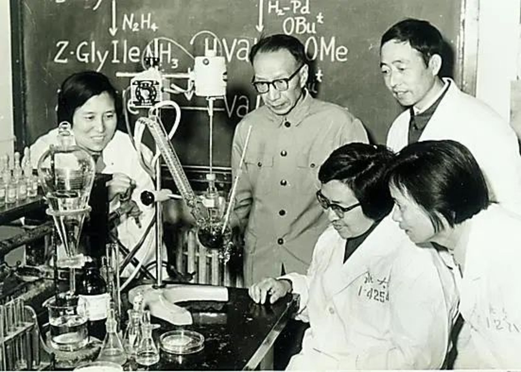 “合成牛胰岛素是中国科技史上的一件大事,也是有世界影响力的科研成果。这个项目是‘大跃进’时候提出的,后来因为群众运动搞科研‘大兵团作战’而徒劳无功。李崇熙老师和陆德培老师在这方面做了很多工作,对项目的最终完成功不可没。群众运动之后,李老师和季老师留下来收拾残局。一瓶瓶的原料和中间产物,颜色都差不多,为了保密,很多标签还是别人看不懂的编号。几位老师对药品及遗留下来的资料进行了尽可能的梳理,并继续进行一些与胰岛素相关的多肽合成方面的研究。”