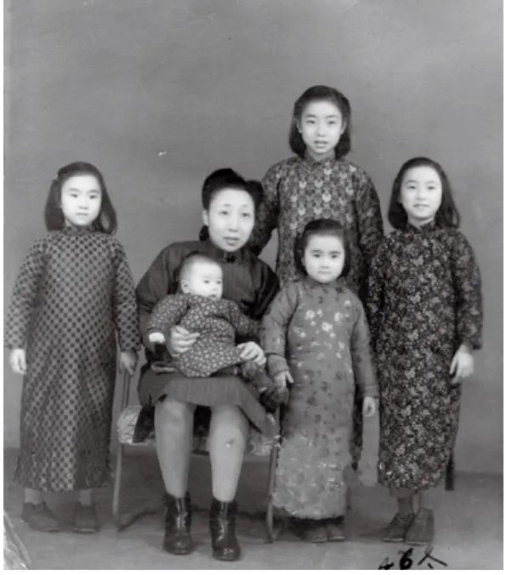 1946年汤卡罗(左)五姐弟与母亲合影