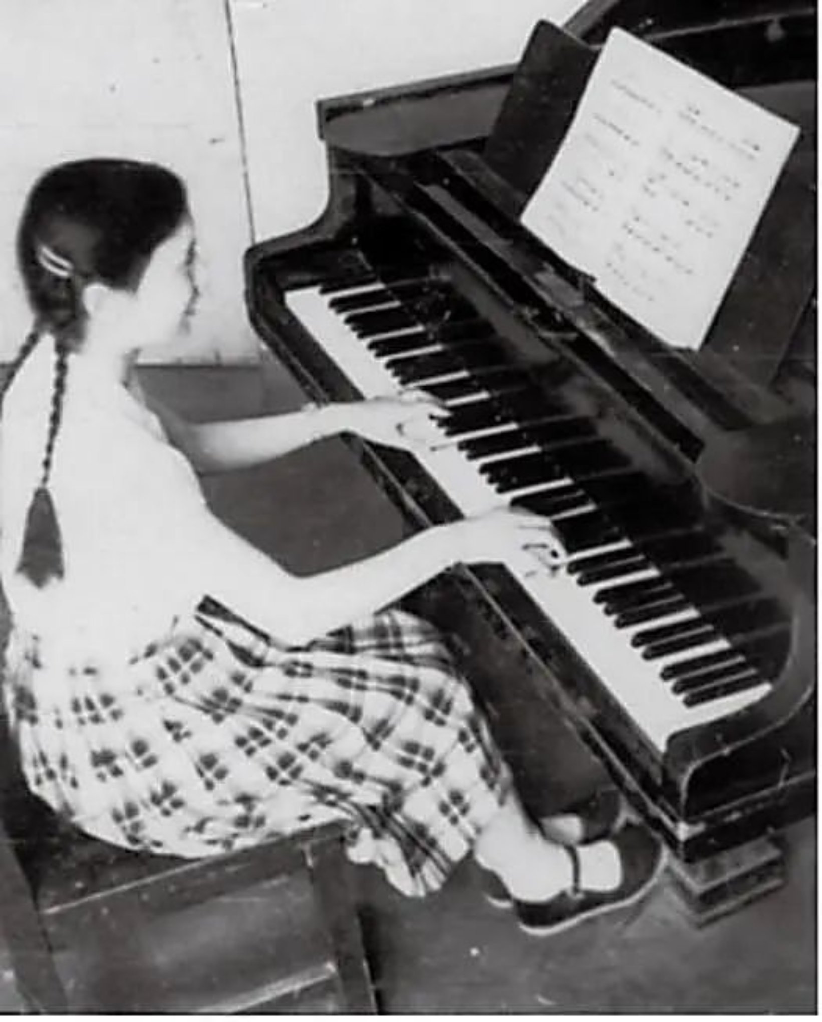 “我小时候确实跟其他孩子有点不太一样,他(她)们都更喜欢玩、做游戏,而我则更喜欢学习。现在回想起来,以前的生活大部时候是很苦的,学习环境也很糟糕,但我只要能学习就会觉得很开心。1946年我刚上小学一年级,我们家就搬到了上海虹口。先在一个公立闸北小学上了两年,后来母亲发现这个学校的教育质量很差,三年级时就把我转学到家斜对面不远的守真堂小学上学。这是一个美国人创办的教会学校,学校管理非常严格,教学要求也很高,所有的课程都是70分及格。我们小学五年级就要学习10门文化课。不过我们那时课程分得比较细,比如英语就有口语、语法、习字三门,语文也有国语和古文文选两门,其它课程是算术、历史、地理、自然等,另外还有另交学费的钢琴课。我从6岁开始学钢琴,启蒙老师是上海音乐学院王家恩教授,我们搬家后嫌路远不去了,正好就在学校继续学了。我非常喜欢这个学校,8点钟上课,我不到6点就起来了,尤其冬天,早上6点天还是黑的。那时家里没有煤气,保姆也要起来生煤炉子给我做饭,经常埋怨我。我匆匆忙忙吃几口泡饭,自己歪七扭八地梳好辫子就去学校了。到学校大概6点半左右,看门的工友还没起床,我就敲门。我那时个子小,自己从路边捡一块砖,站在砖上踮起脚才能按到门铃。我记得那个工友叫做老王,揉揉眼睛就出来了,很不高兴地问我为什么这么早来。”