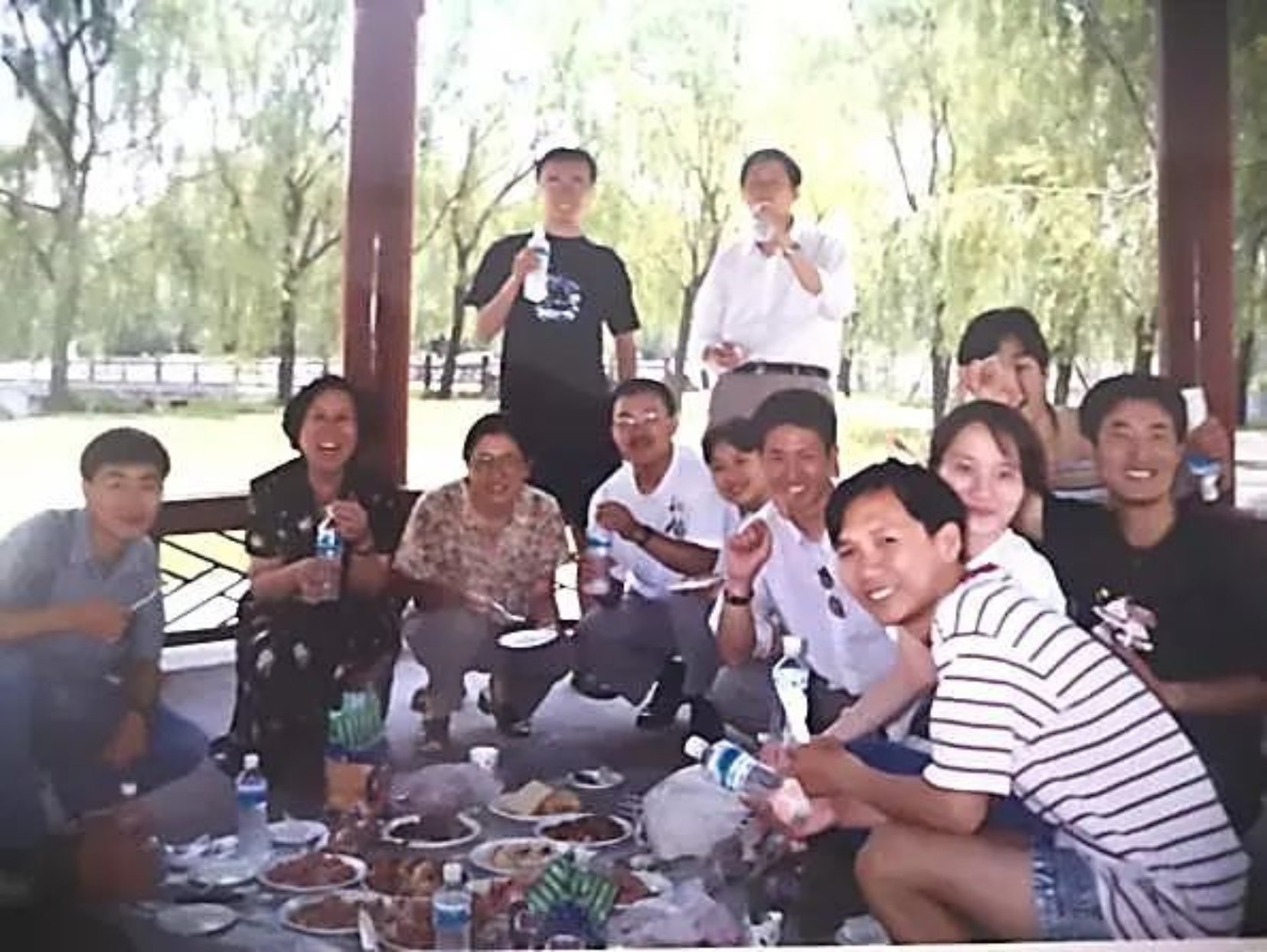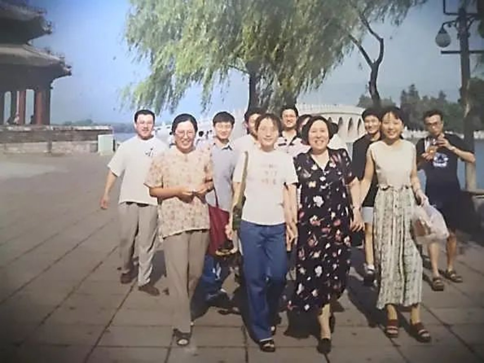 “1994年是我自己申请要当班主任。当班主任有很多琐碎的学生工作,会占用很多时间,又不算‘科研成果’,所以很多时候要领导指派。我是主动自愿要当,金老师也非常支持,并任命自己为‘副班主任’,和我一起参加学生活动,学生们也都很喜欢他。我跟学生说我把你们当作自己的孩子看待,因为你们跟我女儿是同龄人。那时候我住在蔚秀园,离学校很近,我说欢迎你们到家来。这个班级的同学跟我特别亲近,我每年都要请学生到家里吃饭。6月25日金老师的生日,或者是12月25日圣诞节,正好都是学期结束的时候。有男朋友、女朋友都可以带来,非常热闹。后来搬到燕北园,房子也不大,来的人多,勉强坐下来,不可能大盘小盘地招待大家吃饭。这多亏金老师有一项绝技:擅长制作春卷皮。我看他把面做好了,然后用平底锅一粘就是一个,制作200个皮用不了多长时间。一个男生吃8个春卷也就差不多了,200个春卷足够20多个同学吃了。再加其它一些熟食、干果、水果、饮料,大家吃着、聊着,很高兴。我还会弹几首钢琴曲助兴,所以每次聚会大家都很开心,气氛很热烈,这也成为了他们毕业后对校园生活的美好回忆。”