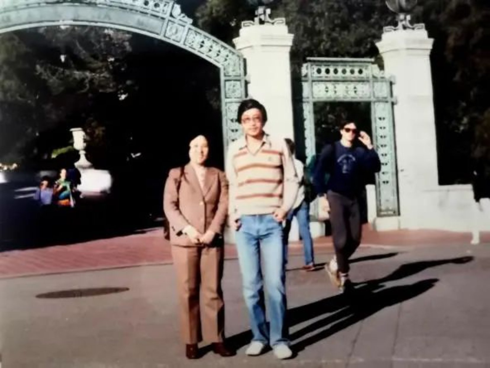 1986年汤卡罗(左)和79级学生童亮摄于加州大学伯克利分校
