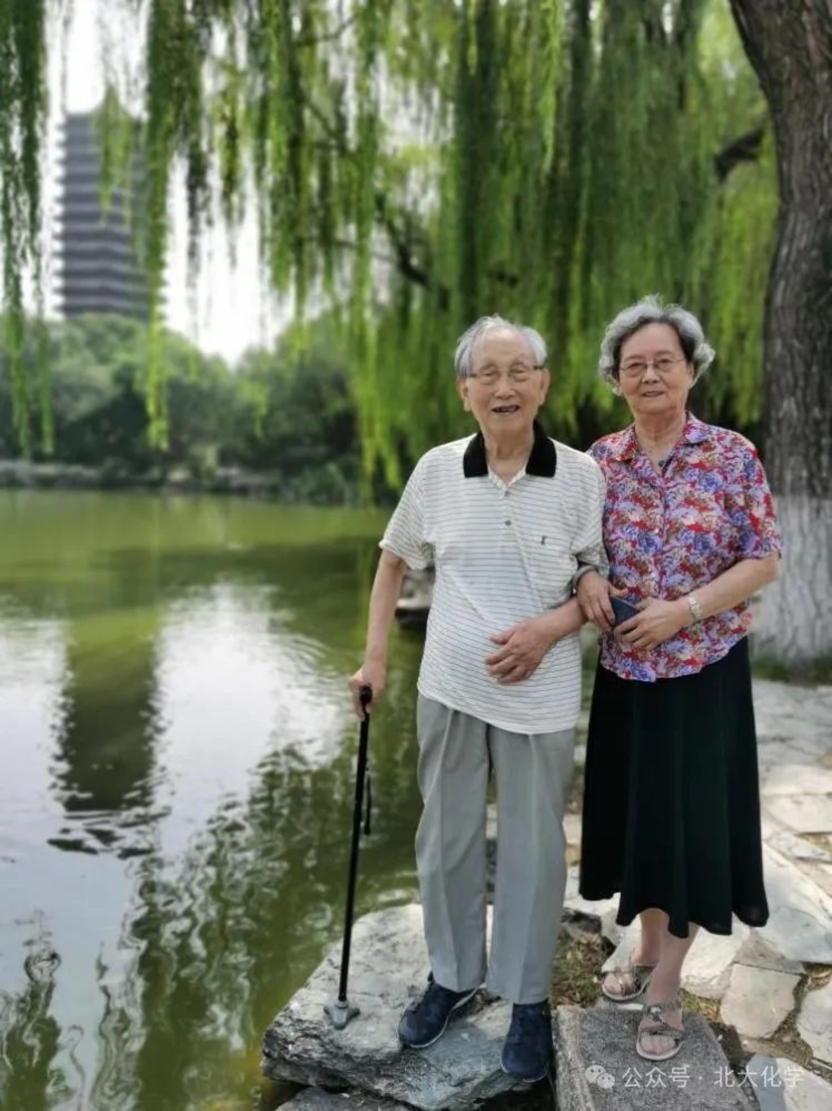 “我能全身心地投入工作,是与家人的支持分不开的。宣文为支持和鼓励我,分担许多家内家外的事情。孩子们也理解我对他们关心照顾不够。2021年8月5日是我们结婚60周年的日子,那时正值全国新冠疫情最严重时期,退休人员不允许进校园。为了纪念钻石婚,我通过化学学院向校保卫部申请获准入校,女儿和儿子开车带我们到北大校园里转了一圈,回顾我们工作和生活过的地方,并在北大人永不忘怀的未名湖拍了照,后到家园食堂共进午餐。”
