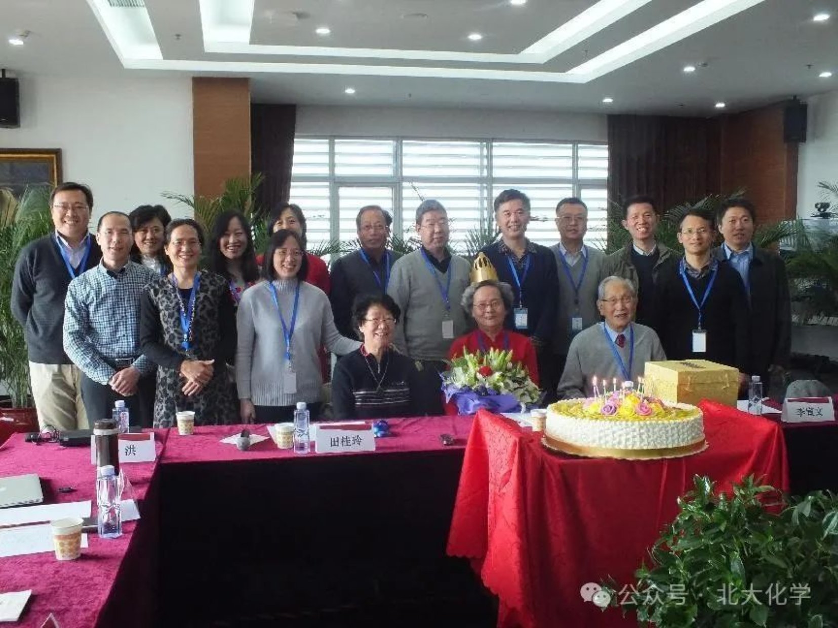 “2016年,有几位学生提出要为我过80岁生日,我觉得大家工作都很忙,一直没同意。后来他们提出开一个学术交流会顺便给我过生日,我就没理由推脱了。11月利用周末时间,周亚伟与纪建国两位课题组的教授老大哥组织了这次交流会。每个人把自己毕业以后做什么工作,以后有什么计划等都用PPT向大家做了汇报。闫爱新特从香港赶过来参加这次会议,陈志宽、唐艳春和杨洪专程从南京来参加交流会。听了他们的报告,我非常感动,他们离开北大后,在各自工作中都取得重要成就,真是长江后浪推前浪,一代更比一代强。报告从上午9点持续到晚上8点才结束。席间庆祝了我的生日,吃了生日蛋糕。这是我一生中最美好、最难忘的生日。”