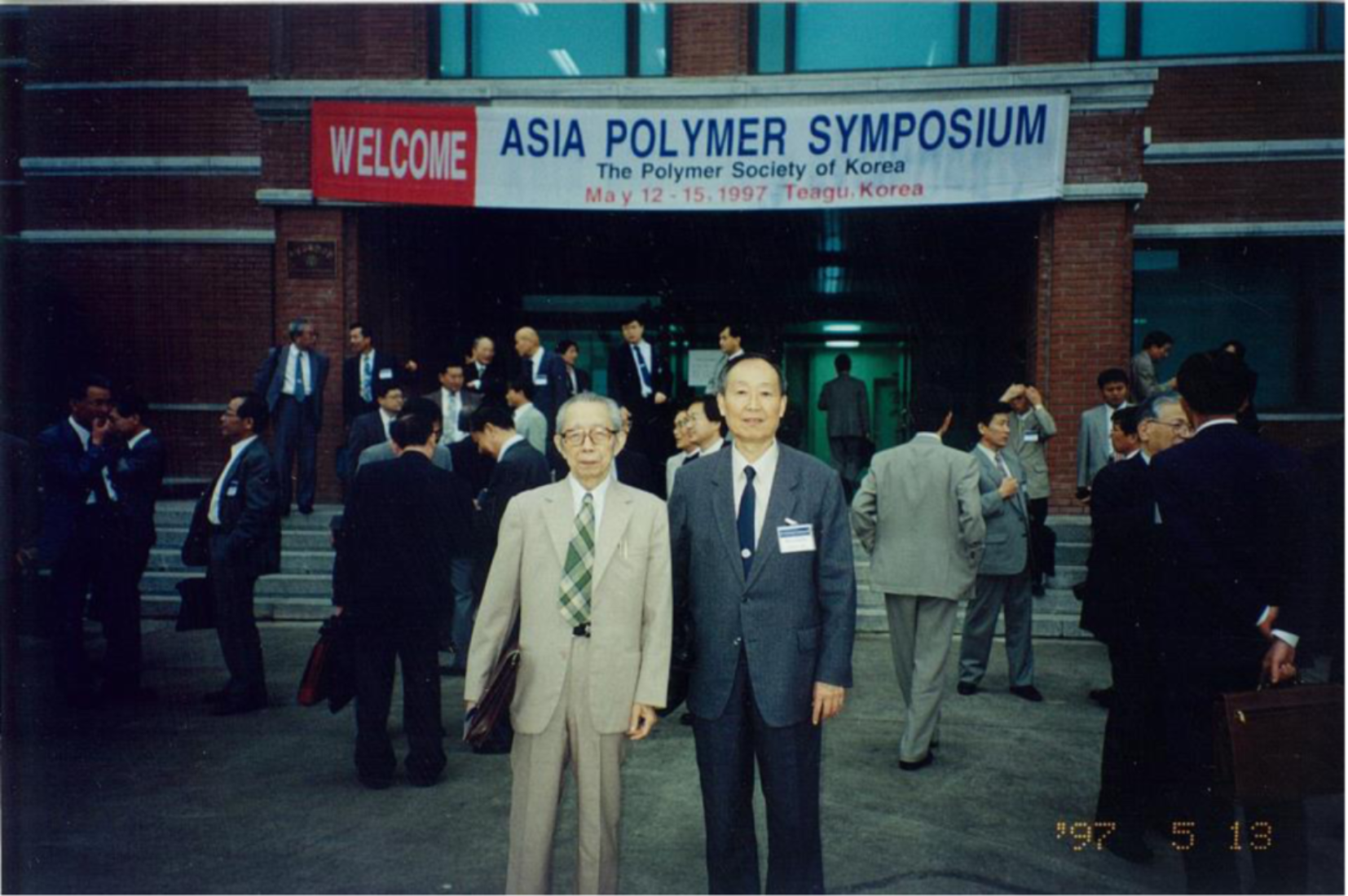 图9. 1997年5月,冯新德先生(左)和作者(右)出席韩国大邱“第三届亚洲高分子研讨会”,这是冯先生出席的最后一次国际会议。