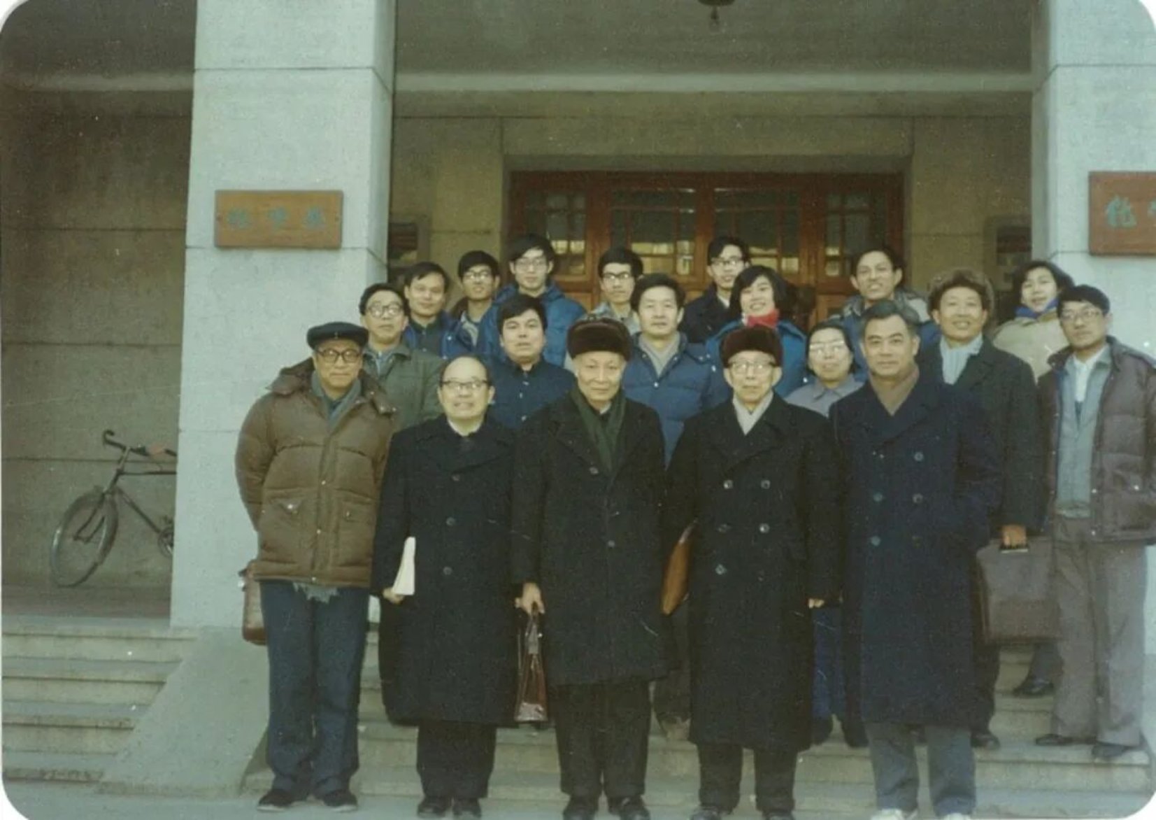 图5. 1986年,冯新德先生(前排右二)参加北京大学化学系李橦的博士学位论文答辩后答辩委员会合影。
