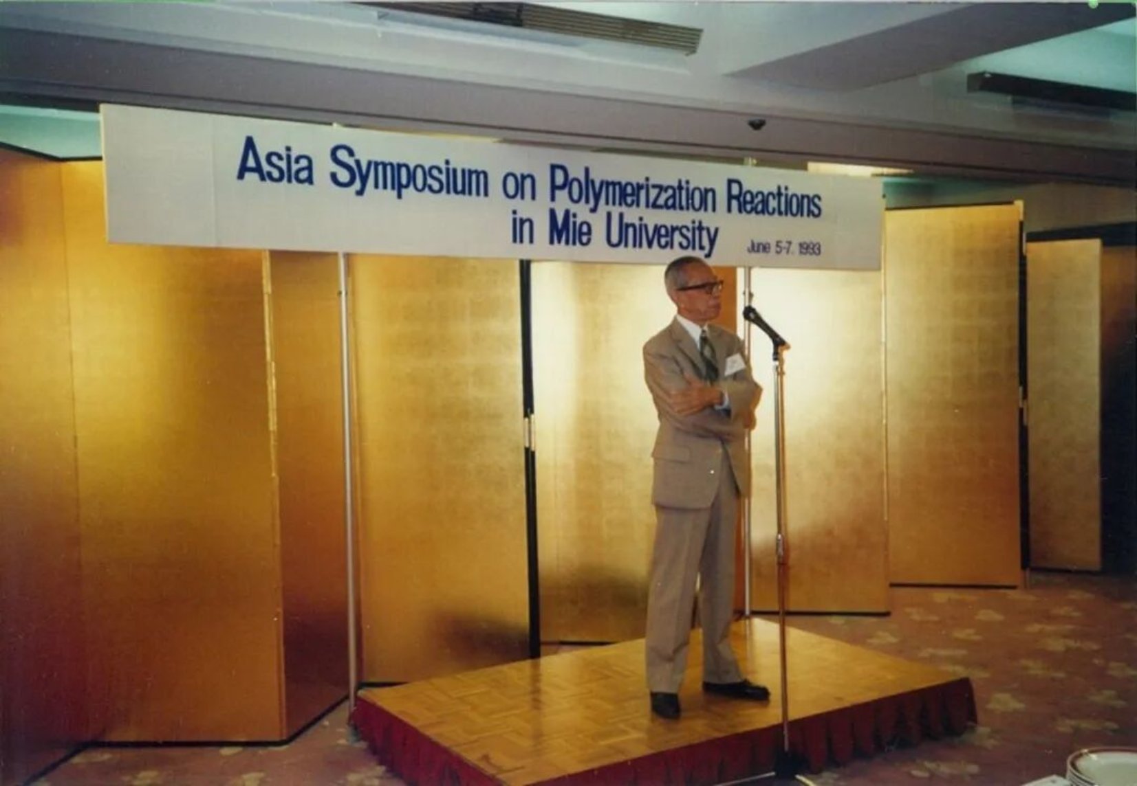 图7. 1993年6月6日,冯新德先生出席日本津市“亚洲聚合反应研讨会”(第一届亚洲高分子研讨会)晚宴上致辞。