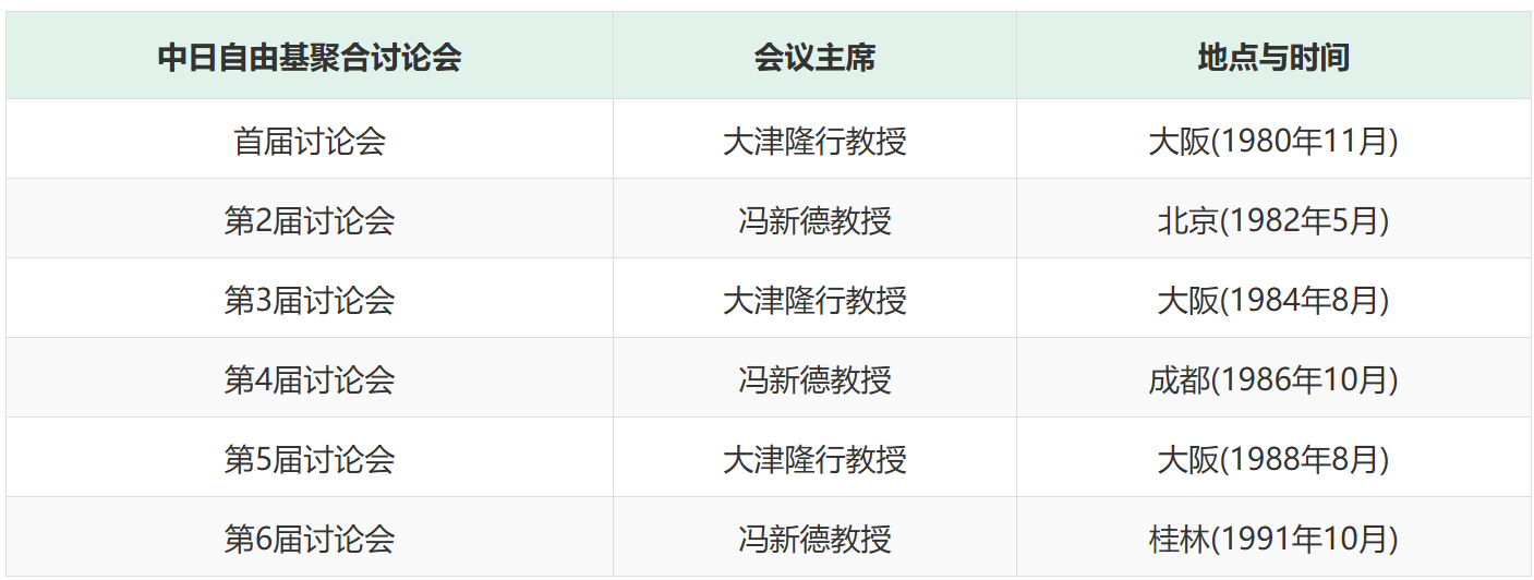 如何将科学研究步入国际学术圈子, 冯先生认为主要是开展国际学术交流,通过在中国承办国际学术会议和参加国外的学术会议来实现。1980年,冯新德先生和日本化学会前会长井本稔先生共同发起的 “中日自由基聚合讨论会” 在大阪举行,李福绵和我被选入中方成员出席该讨论会,由此冯先生带我们步入国际学术圈子,见识世面。该会隔年分别在日本与中国召开。1980-1991年,举办了6次,其中第6次会议是隔了2年,见表1。冯先生和我都出席了这 6次讨论会,见图6。此后,该讨论会扩大为中、日、韩为主的 “亚洲聚合反应讨论会”、“亚洲聚合反应与精细高分子讨论会” 和后续的 “亚洲高分子研讨会”。1993-2008年,隔年分别在日本、中国、韩国举行了8次。其中第6次研讨会是隔了2年,见表2。冯先生出席了前3届研讨会,见图7、8、9,我也出席了前5届会议。